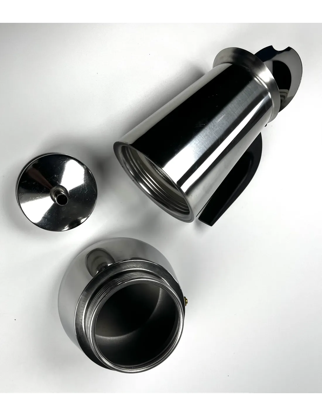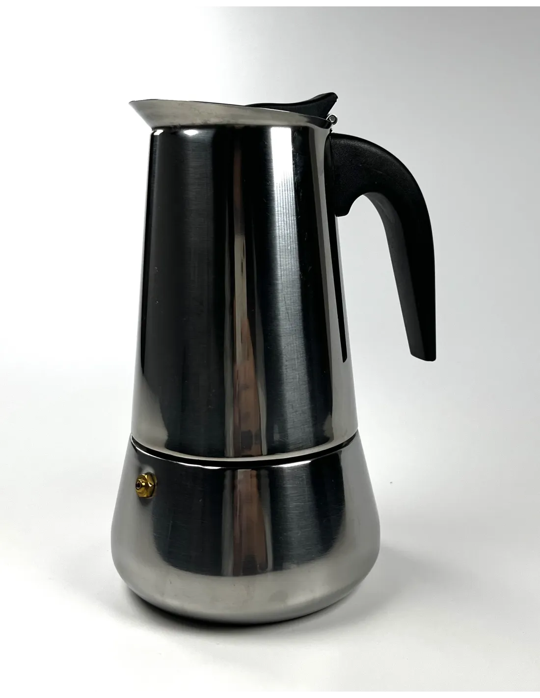 Kaffiadzbanek moka ze stali nierdzewnej do przygotowania 4 filiżanek kawy mokka. Prosta metoda przygotowania bardzo zbliżona do espresso, ale za ułamek ceny. Pojemność: ok. 201,5 ml. Nadaje się do płyt indukcyjnych.