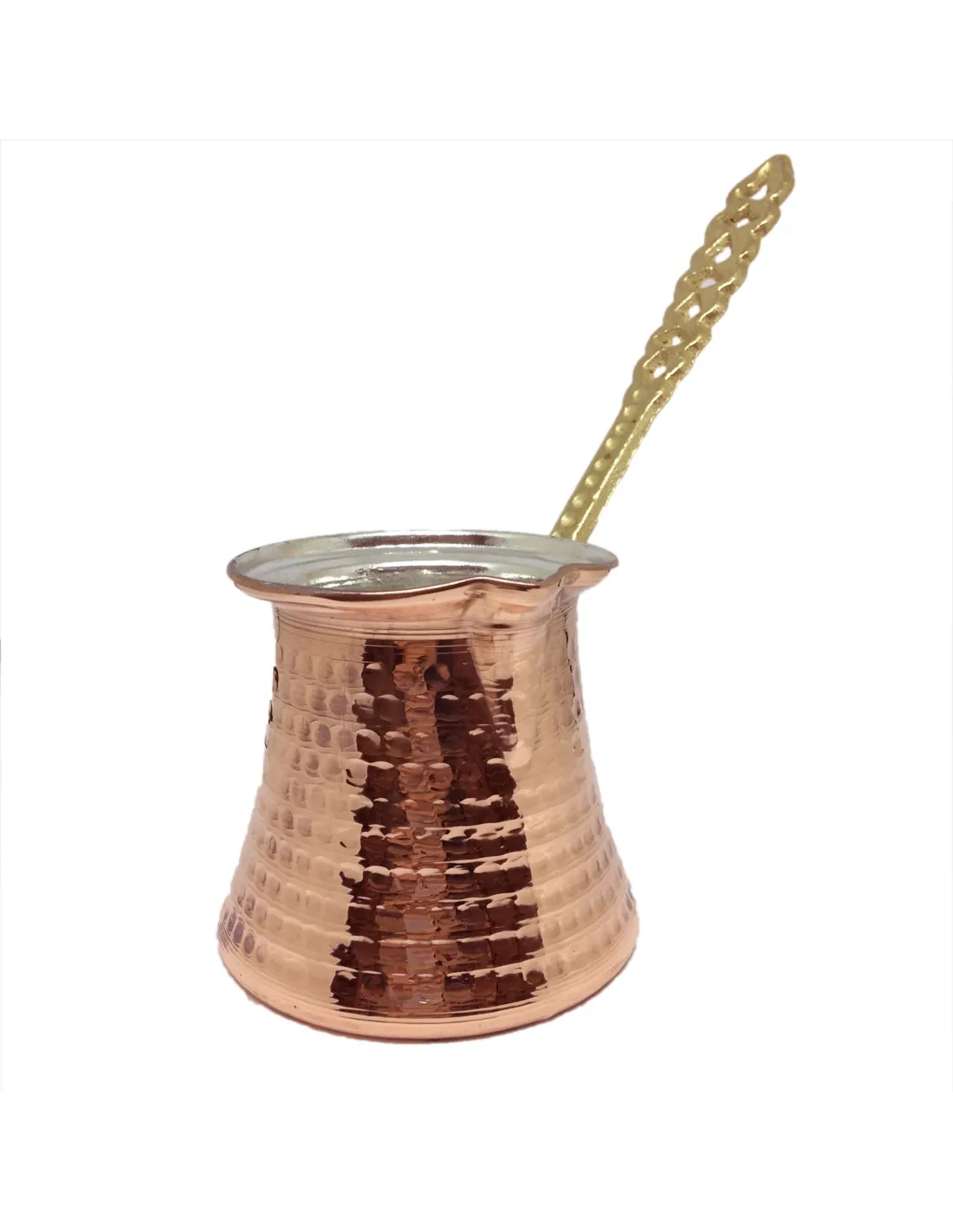 Ręcznie wykonana miedziana jeezva prosto z tureckiej wsi. Dżezwa jest młotkowana tradycyjną metodą rzemieślniczą.