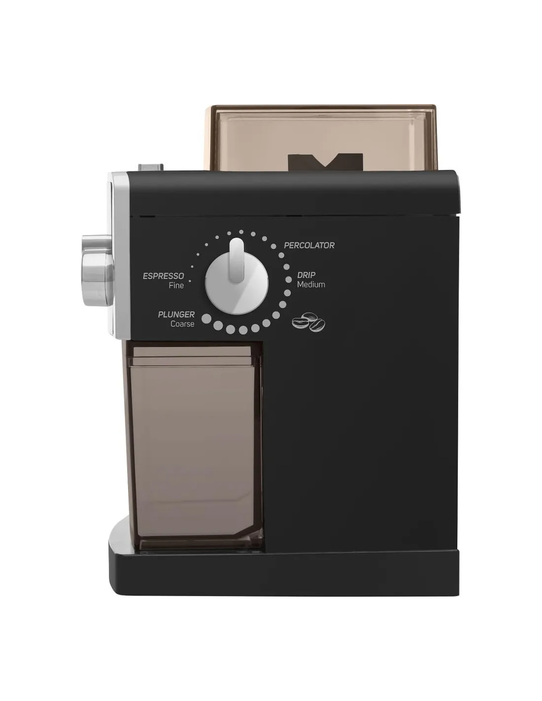 Môžete si nastaviť potrebnémnožstvo mletej kávy od 2 do 12 šálok a vďaka funkcii automatického vypnutia sa mlynček postará o všetko za vás. Jednoducho nastavte požadovanú porciu a nechajte mlynček pracovať - po dokončení sa automaticky vypne. Navyše má veľkú kapacitu, čo je skvelé na prípravu viacerých šálok naraz. Zásobník pojme až 180 gkávových zŕn a odnímateľnánádoba na mletú kávu má kapacitu až 100 g, čo znamená, že máte všetko pod kontrolou bez nutnosti neustáleho dopĺňania.