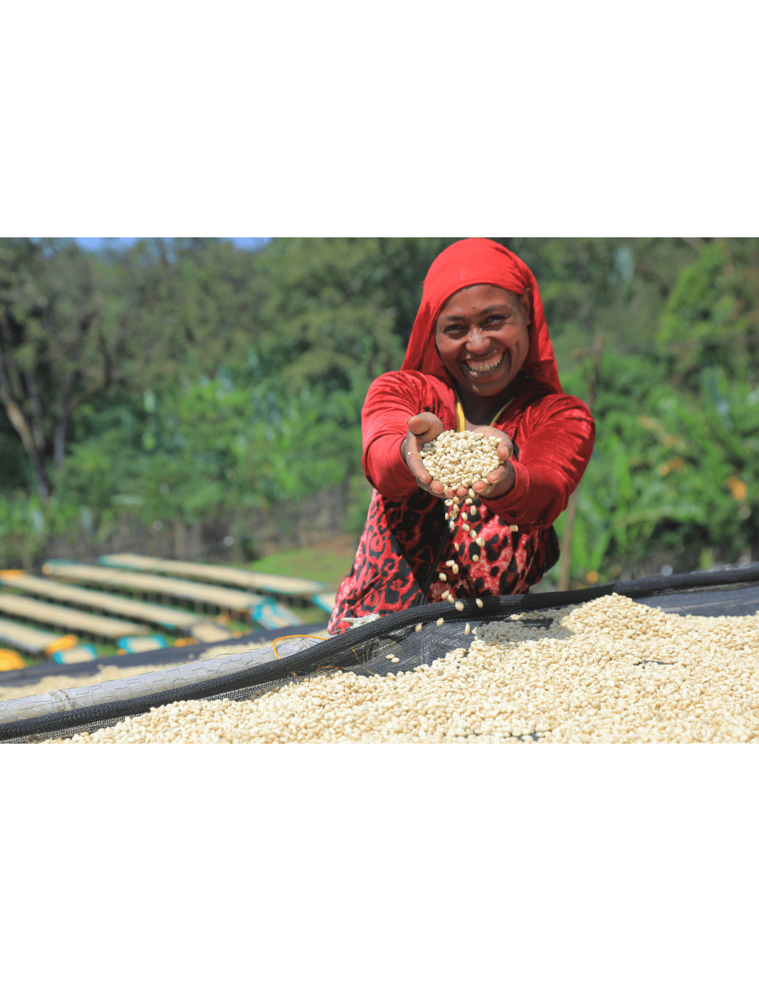 Káva pozostáva z pôvodných etiópskych odrôd Heirloom. Po prvotnom umytí sa čerešne sušia na lôžkach 12 až 15 dní, pričom konečný výber zŕn sa vykonáva ručne.