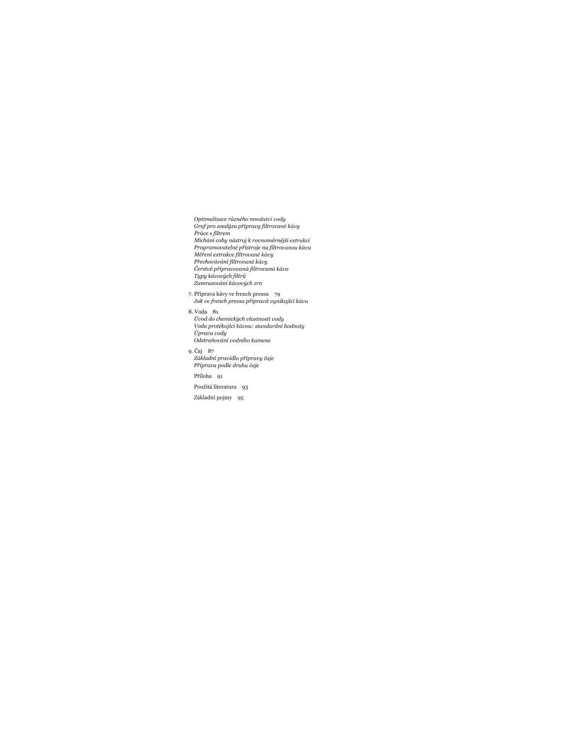 Na 100 stranách Scott opisuje praktické, presné a desaťročiami skúseností overené informácie o príprave kávy v komerčnom aj domácom prostredí. Autor sa zaoberá espressom, filtrovanou kávou, ako aj otázkami mletia a vody. Túto knihu musí mať každý, kto to s prípravou kávy myslí vážne.