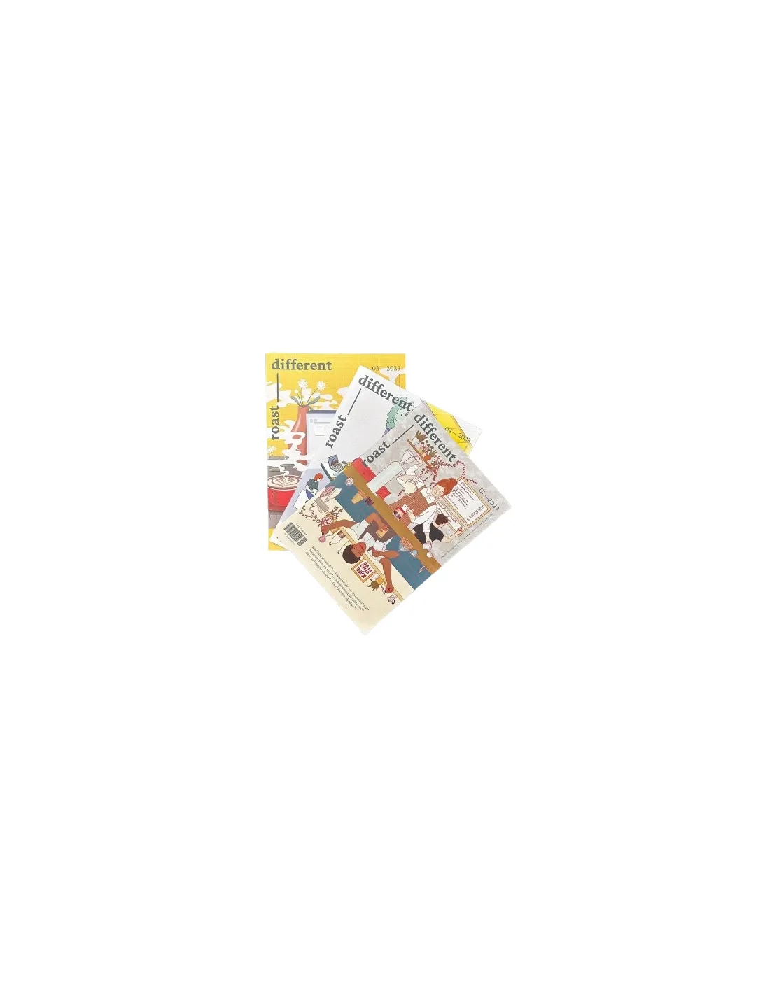 Súbor3 časopisov Roast Different na rok 2023. Vydania obsahujú články zamerané na kľúčové témy týkajúce sa kávy a zaujímavé rozhovory.