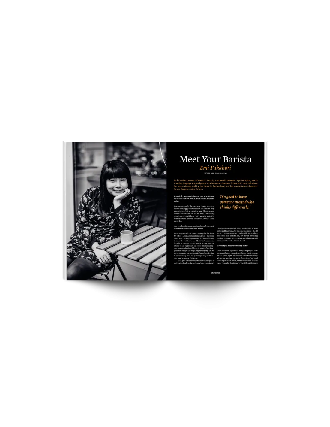 Kapitola ĽUDIA je kreatívny priestor, obsahuje i rozhovor so svetovým šampiónom vo varení pivaers Cup 2018, Emi Fukahori. Jenn Chen vám prináša esej o prepojenia medzi zamestnanie a kávakáva závislosťí, a bude tam aj krátky príbeh z Brazílie - o desivom dni v živote profesionálneho ochutnávka ochutnávač kávykto postupne stráca chuť.