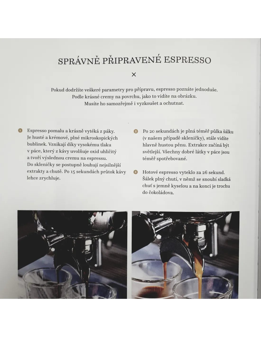Nové krásne fotografie Davida Židlického vtiahnu čitateľa do deja. Zoberú ich priamo na kávové plantáže, do pražiarne, zoznámia ich s domácimi a profesionálnymi mlynčekmi a kávovarmi. V knihe nájdete aj celý rad nových metód prípravy kávy a receptov. Ponúka aj praktické rady, ako si založiť vlastný podnik.