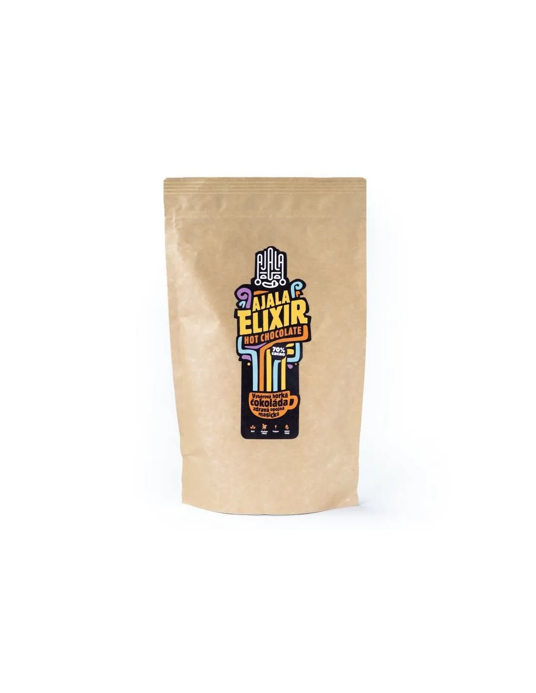 Ajala Elixir obsahuje čistú 70% čokoládu Ajala, ktorá je vyrobená z výberových, eticky nakupovaných kakaových bôbov v bio kvalite a trstinovej šťavy. Výsledkom je výnimočne bohatá a uspokojujúca chuť .