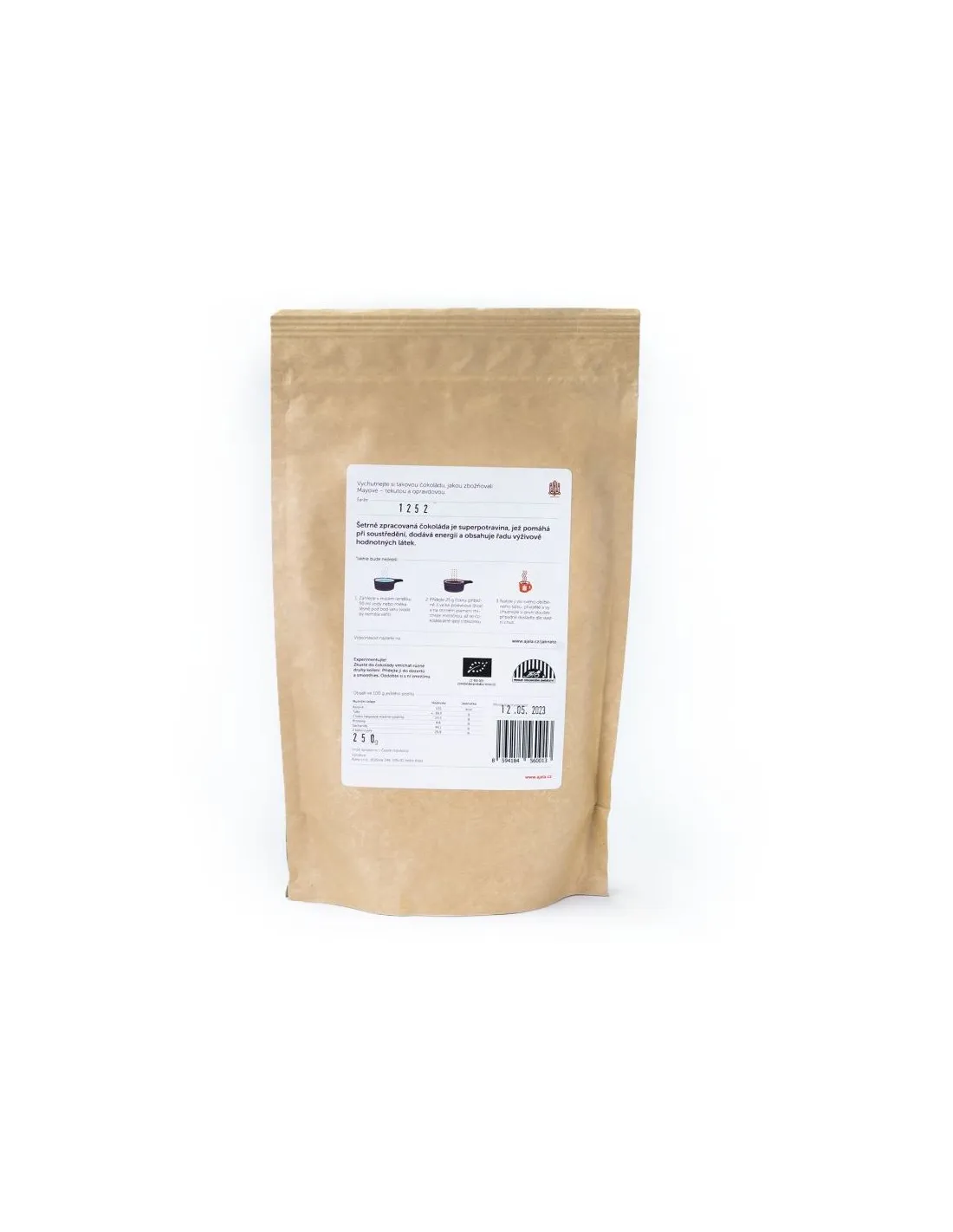 Starostlivo spracovaná čokoláda je superpotravina, ktorá pomáha pri koncentrácii, dodáva energiu a obsahuje množstvo nutrične cenných látok.Zloženie: kakaové bôby, sušená trstinová šťava