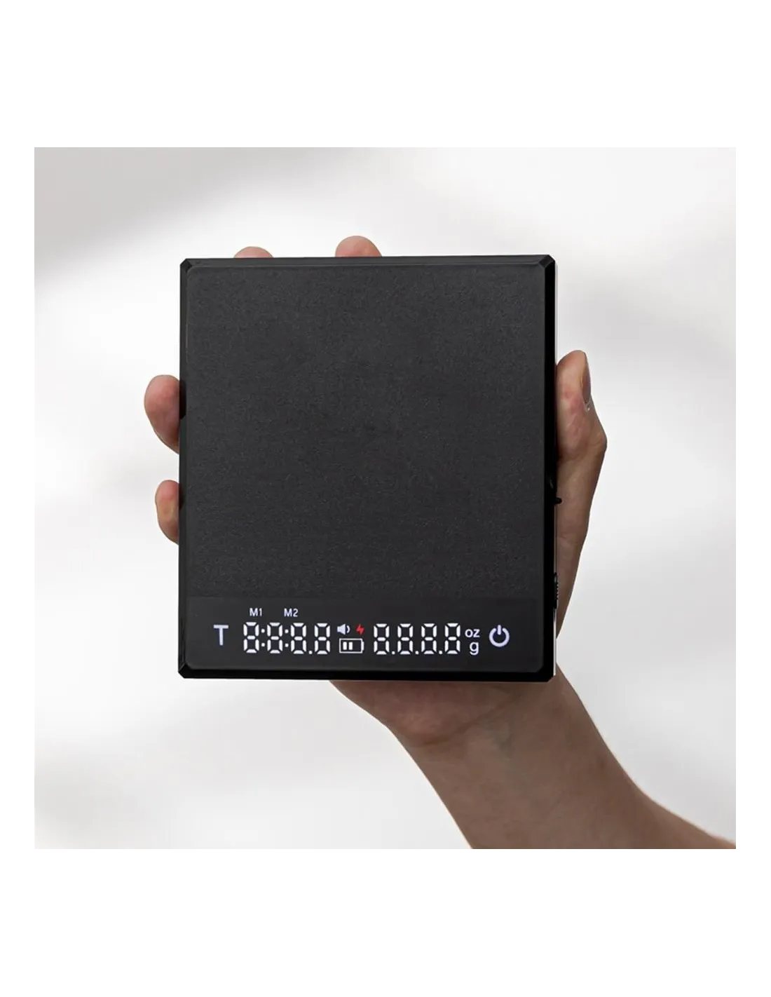 Veľmi presná baristická digitálna váha Kaffia Professional s dvoma režimami na prípravu kávy pre hand brew a espresso. Funkcia tarovania a vstavaný časovač sú samozrejmosťou.