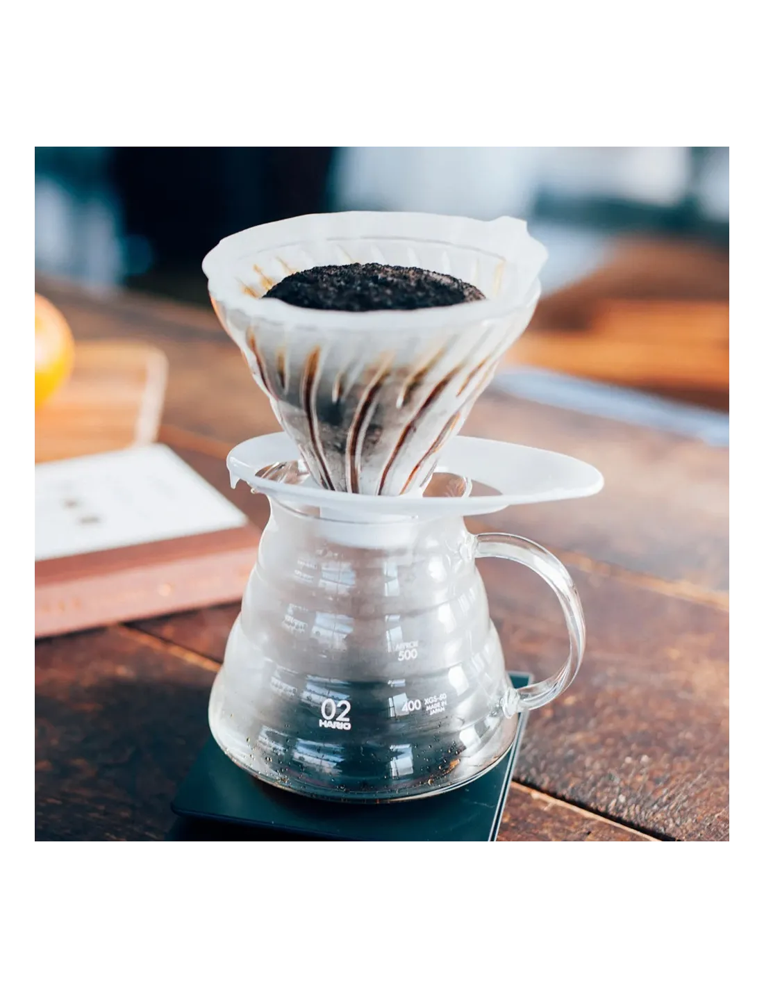 Sklenený dripper Hario V60 na dokonalú prípravu 2-4 šálok čerstvej filtrovanej kávy.