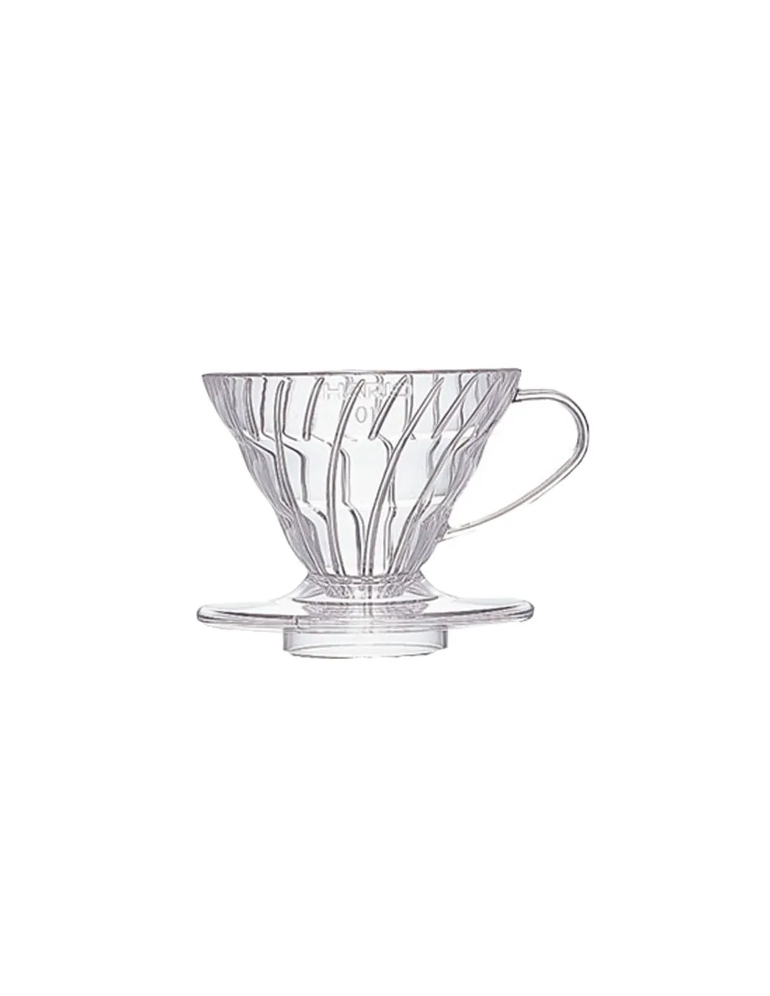 Plastový dripper Hario V60 na jednoduchú prípravu 1-2 šálok filtrovanej kávy. Jasný dizajn.