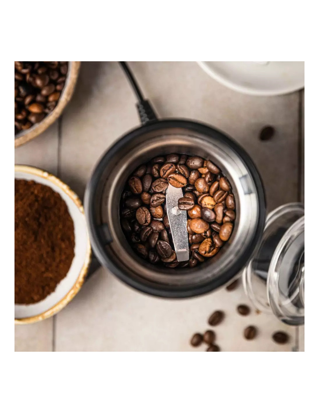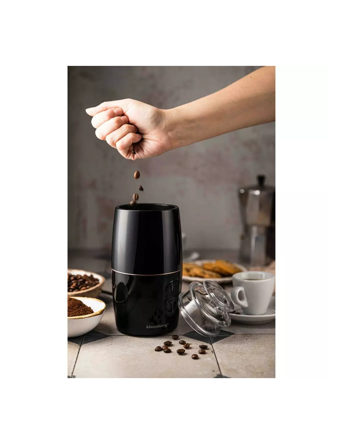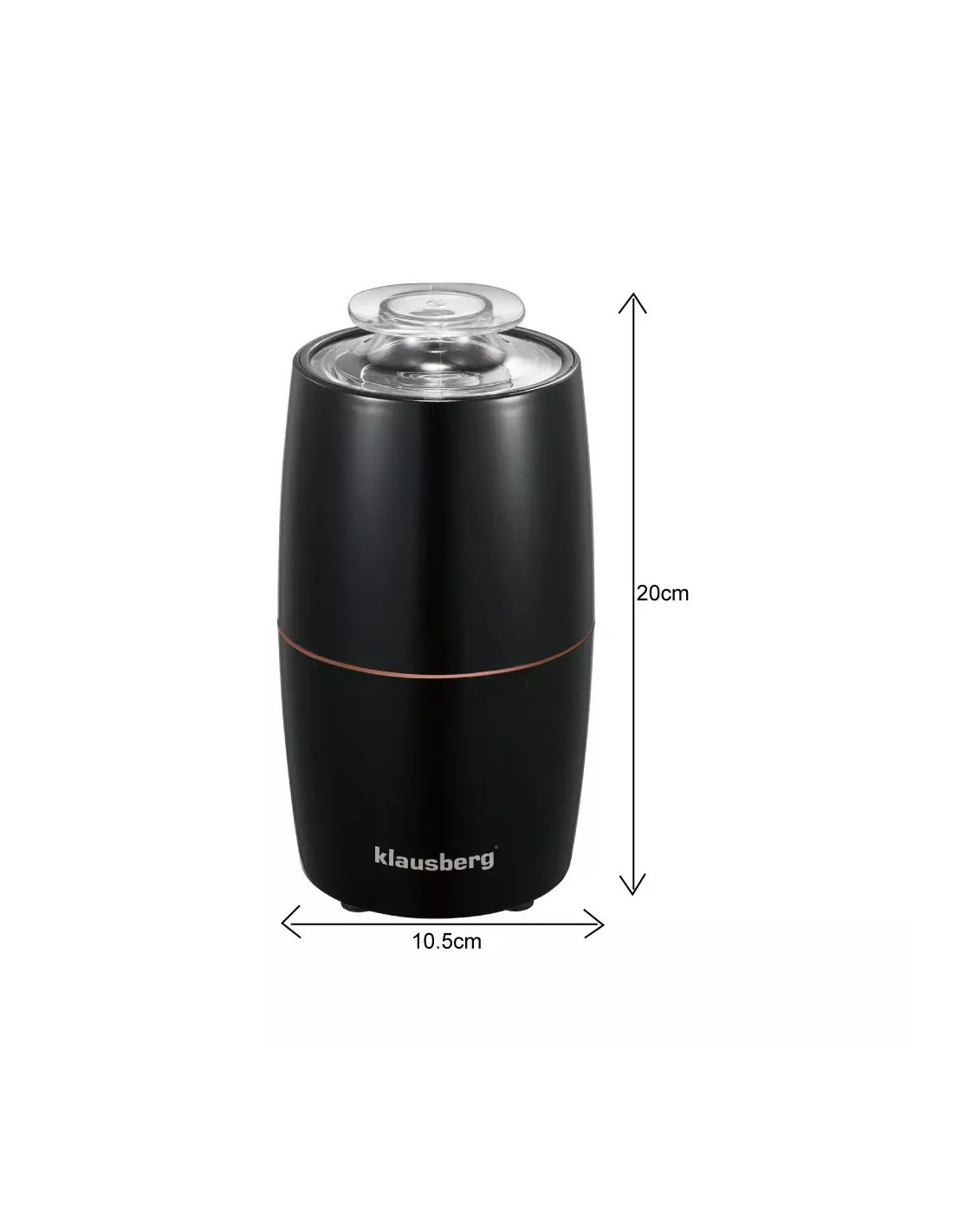Elektrický mlynček na kávu Klausberg je praktickým pomocníkom pre každého, kto si chce doma rýchlo a jednoducho namlieť čerstvú kávu. Vďaka jednoduchému ovládaniu jedným tlačidlom môžete ľahko nastaviť hrubosť mletia - čím dlhšie necháte motor bežať, tým jemnejší bude výsledok.