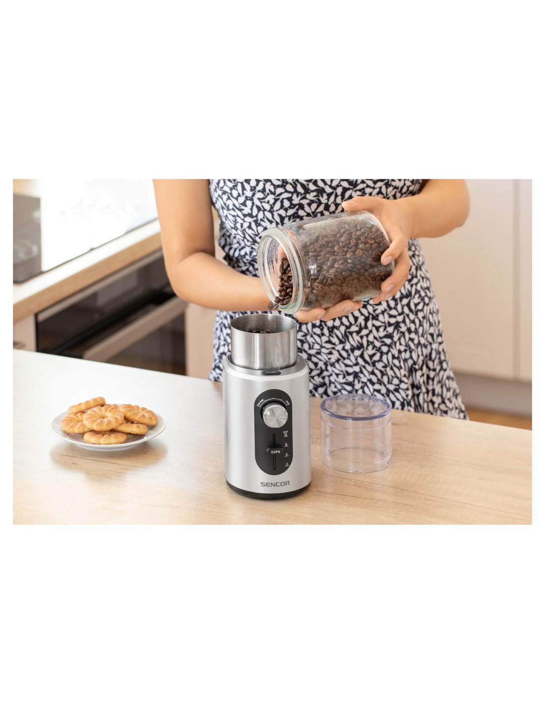 Tento elektrický mlynček na kávu je skvelou voľbou pre všetkých milovníkov čerstvej kávy. Vďaka špeciálnemu titánovému sekaciemu nožu zaručuje rovnomerné a presné mletie nielen kávy, ale aj orechov, byliniek alebo korenia. Vďaka automatickej funkcii ľahko nastavíte požadovanú hrubosť mletia a počet šálok, takže si vždy pripravíte presne také množstvo, aké potrebujete.
