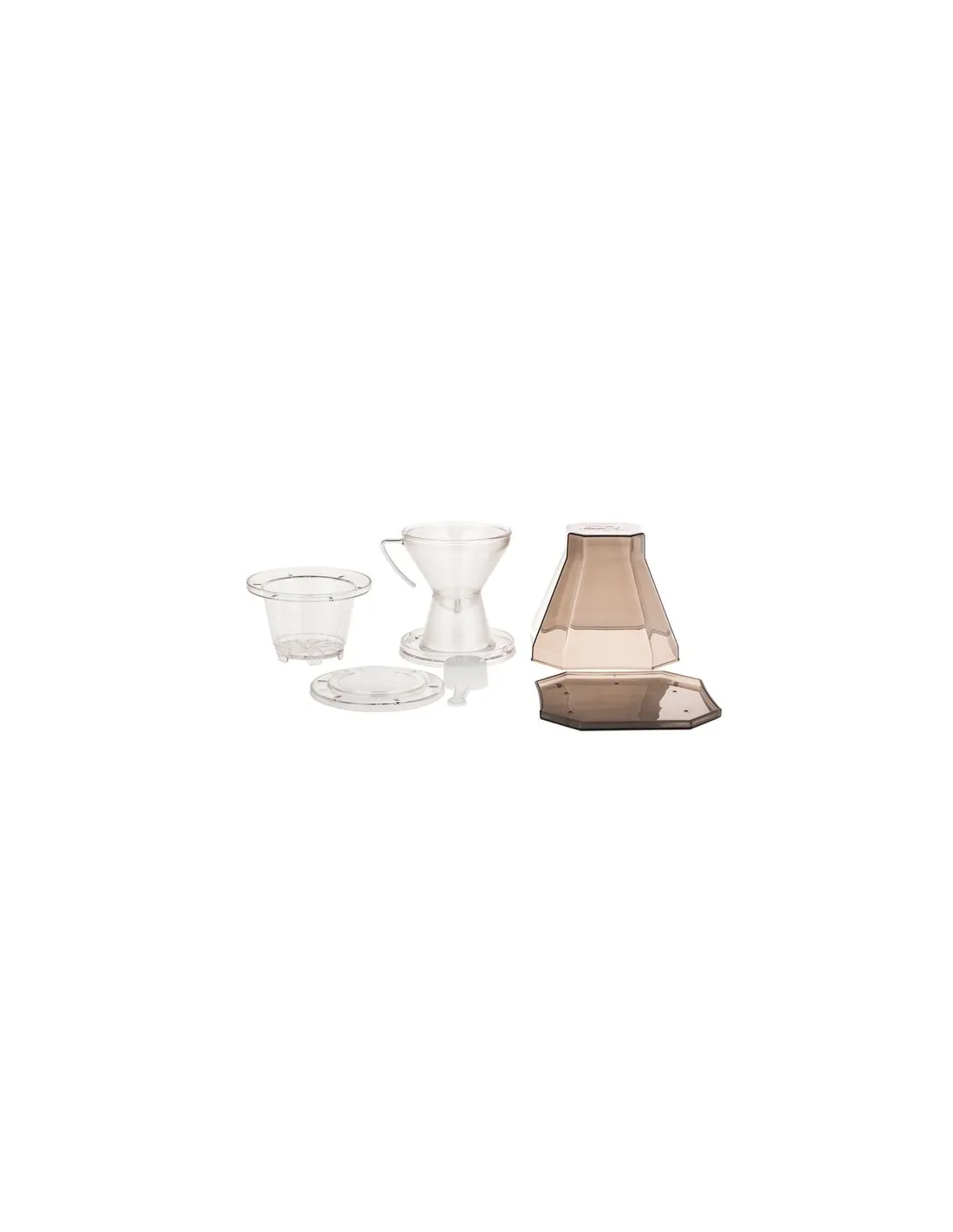 Tento plastový odkvapkávač sa skladá zo 4 častí: nádoby na vodu, sprchového vývodu, samotného odkvapkávača a nástavca pre prípad, že by odkvapkávač nepasoval do vašej obľúbenej šálky alebo čajovej kanvice. Súčasťou balenia je aj plastový box, ktorý môžete použiť pri cestovaní.