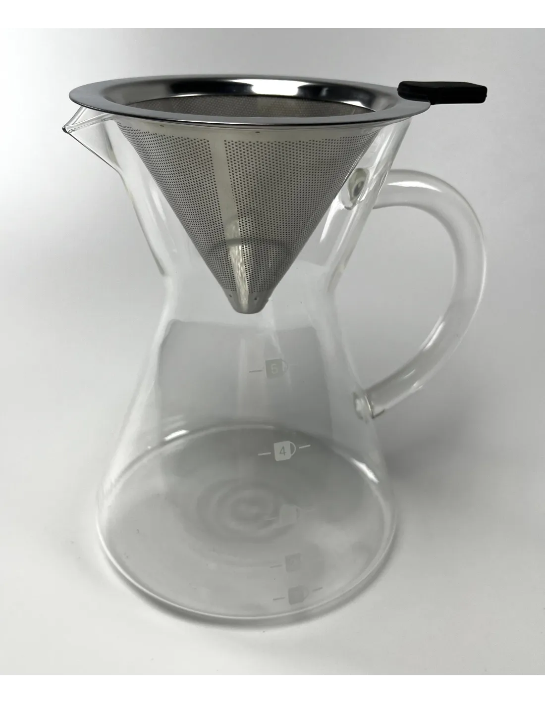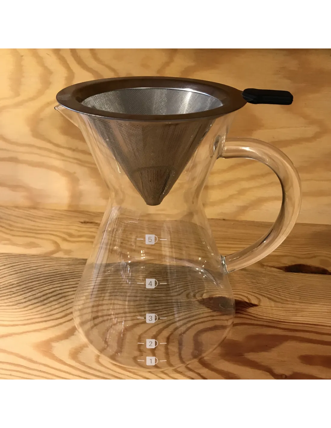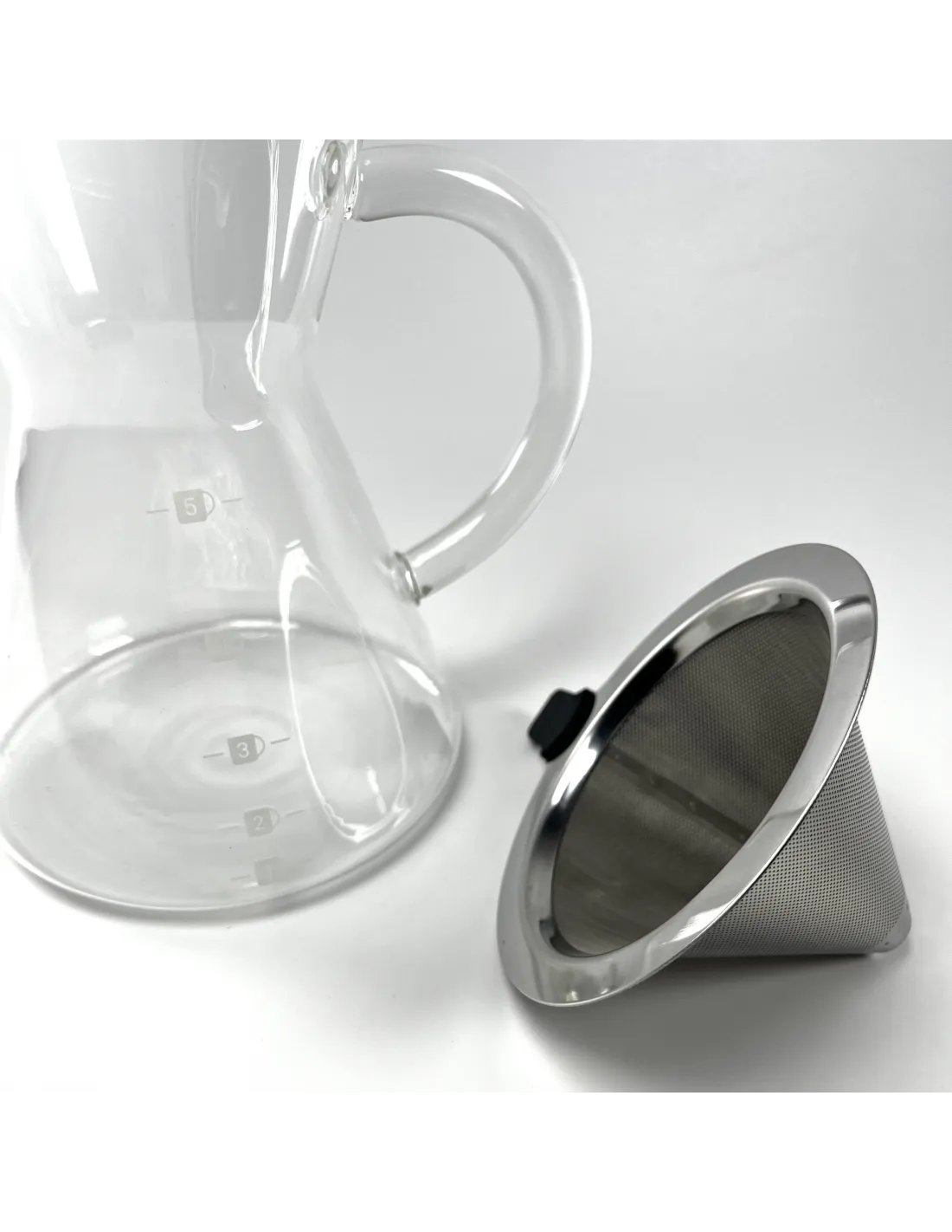 Dekantér Kaffia Kone má jemný kovový filter, z ktorého extrahovaná káva preteká priamo do kanvičky, z ktorej sa káva môže priamo podávať. Je to tiež zaujímavá alternatíva pre tých, ktorí nemajú radi papierové filtre v dripperi, čo bude oveľa úspornejšie a ekologickejšie riešenie. Kovový filter tiež prepúšťa viac jemných kávových olejov ako iné filtre, čo dodáva káve výraznejšiu konzistenciu.