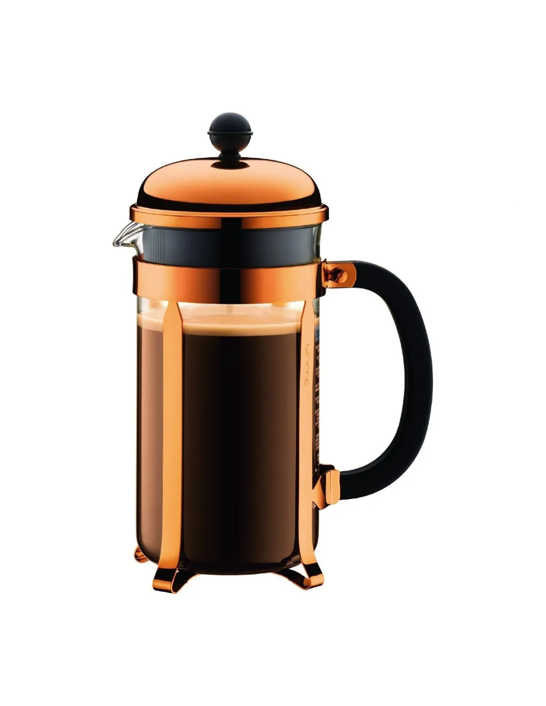 Luxusný a elegantný nerezový french press Bodum Chambord s objemom 1000 ml na prípravu lahodnej čerstvej kávy. Farba: medená.