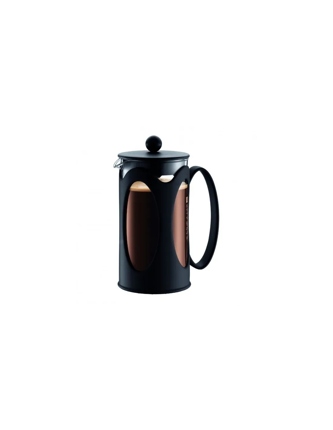 Luxusný zamatovo čierny plastový french press Bodum Kenya s objemom 1000 ml na prípravu lahodnej čerstvej kávy.