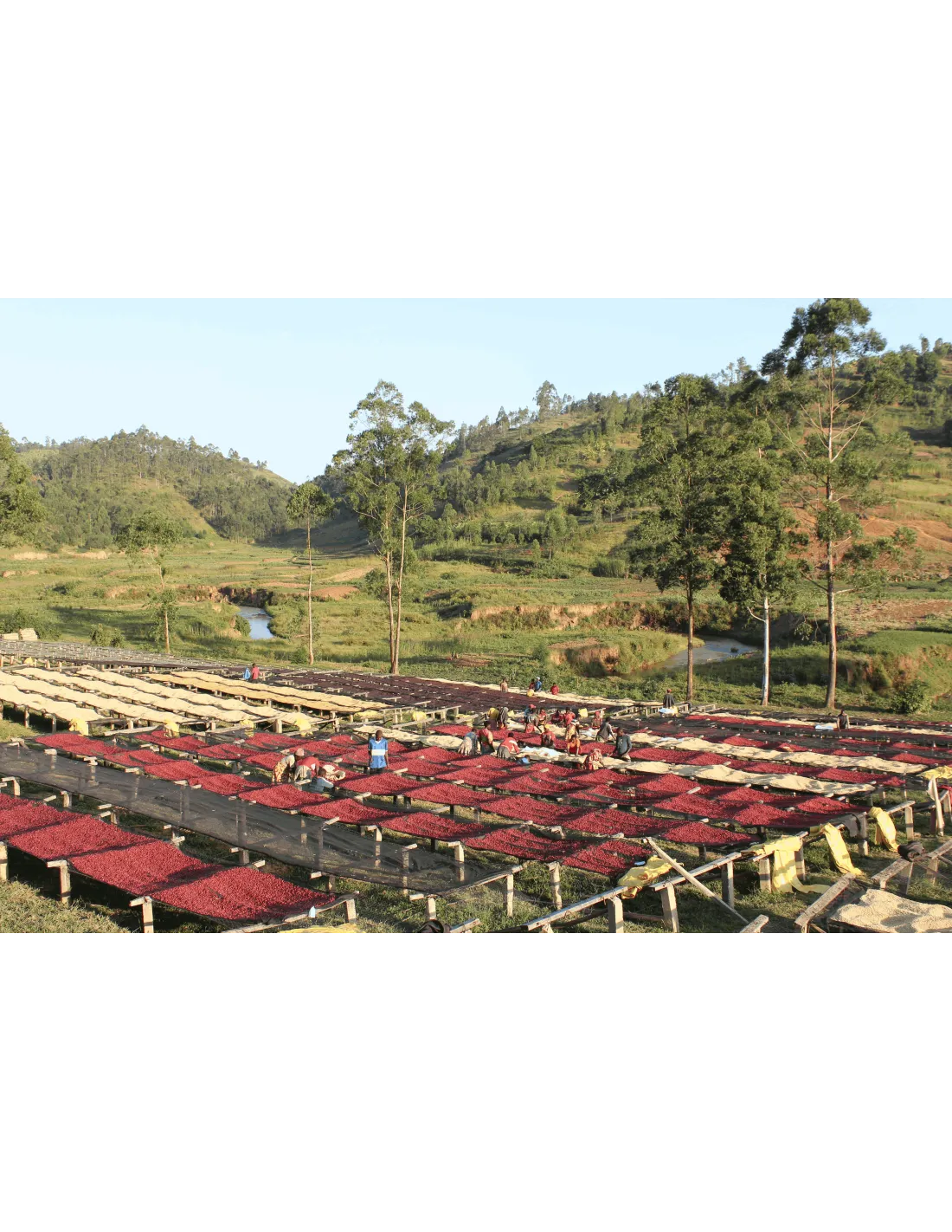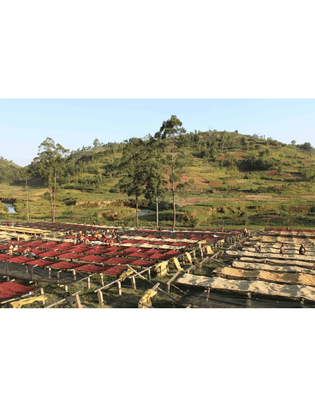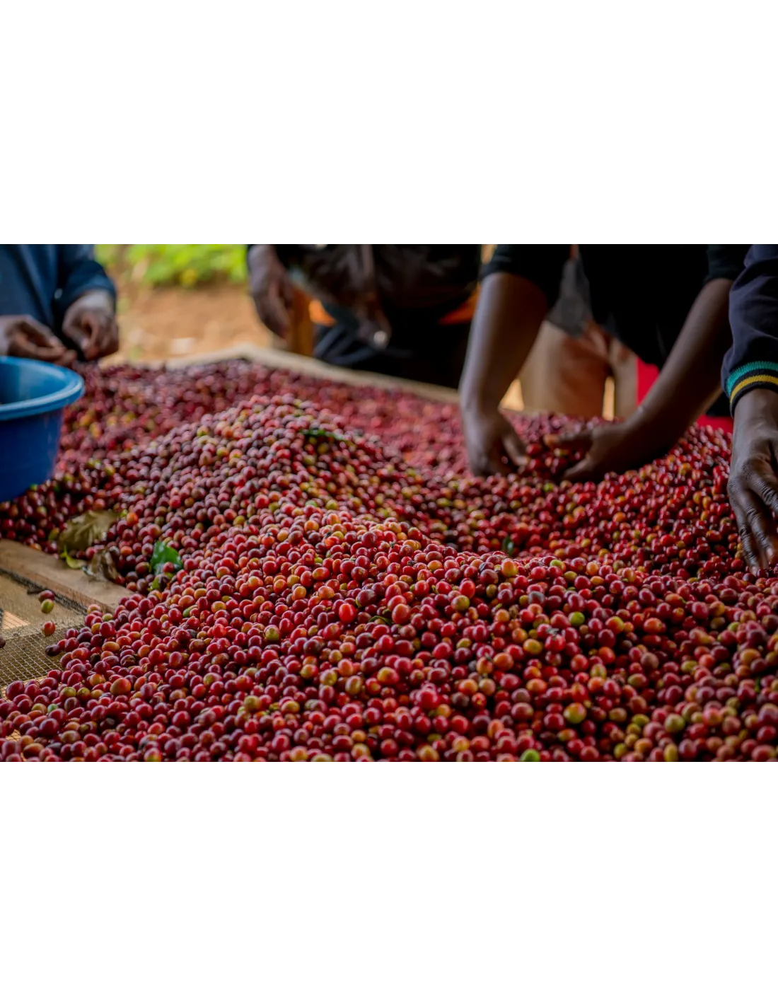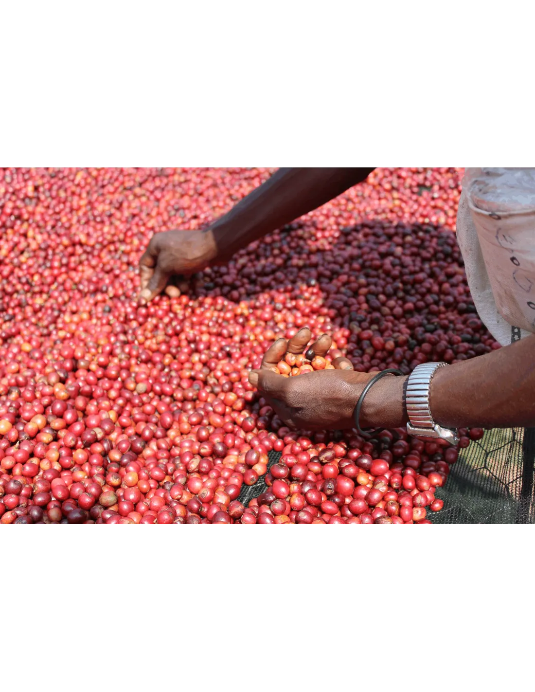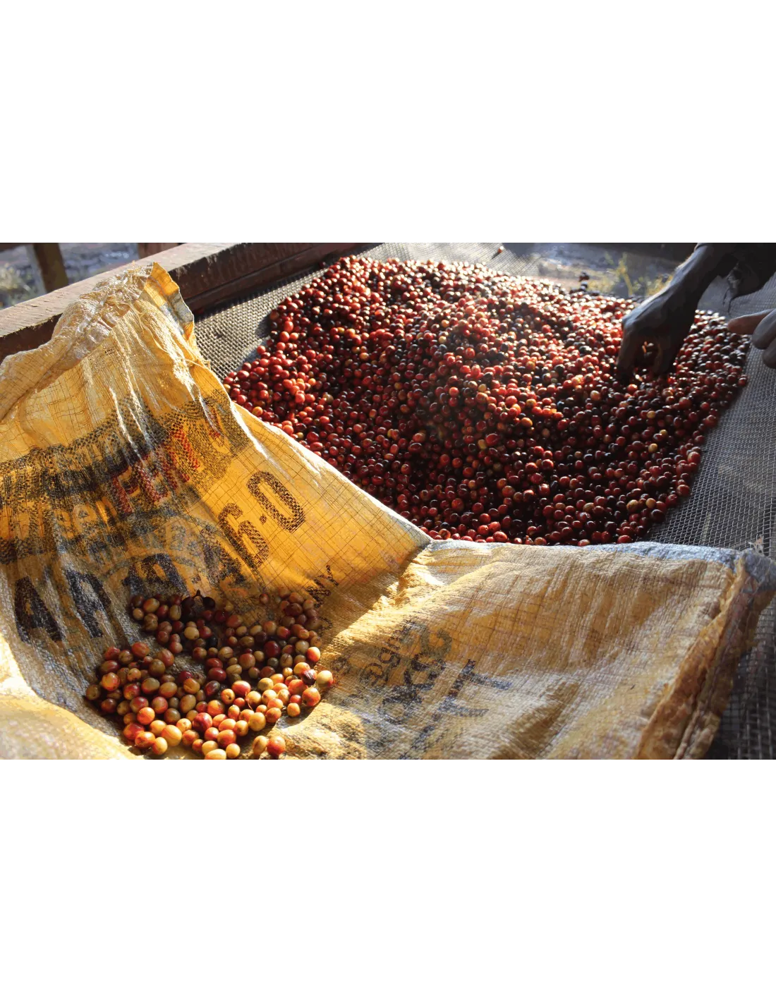 BPočas sezóny zberu sa káva zbiera selektívne ručne. Čerešne sa plávajú v malých vedrách, aby sa skontrolovala ich kvalita. Kvalitné čerešne sa potom ručne triedia a odstraňujú sa poškodené, nedozreté a prezreté čerešne. Čerešne sa potom sušia 3 až 4 týždne na sušiacich stoloch v jednej vrstve. Počas sušenia zberači prechádzajú čerešne a hľadajú chybné kusy. Po vysušení sa pergamen zabalí do vriec a odvezie do skladu. Odborníci v laboratóriu spoločnosti Greenco posudzujú každú šaržu a zabezpečujú sledovateľnosť počas celého procesu.