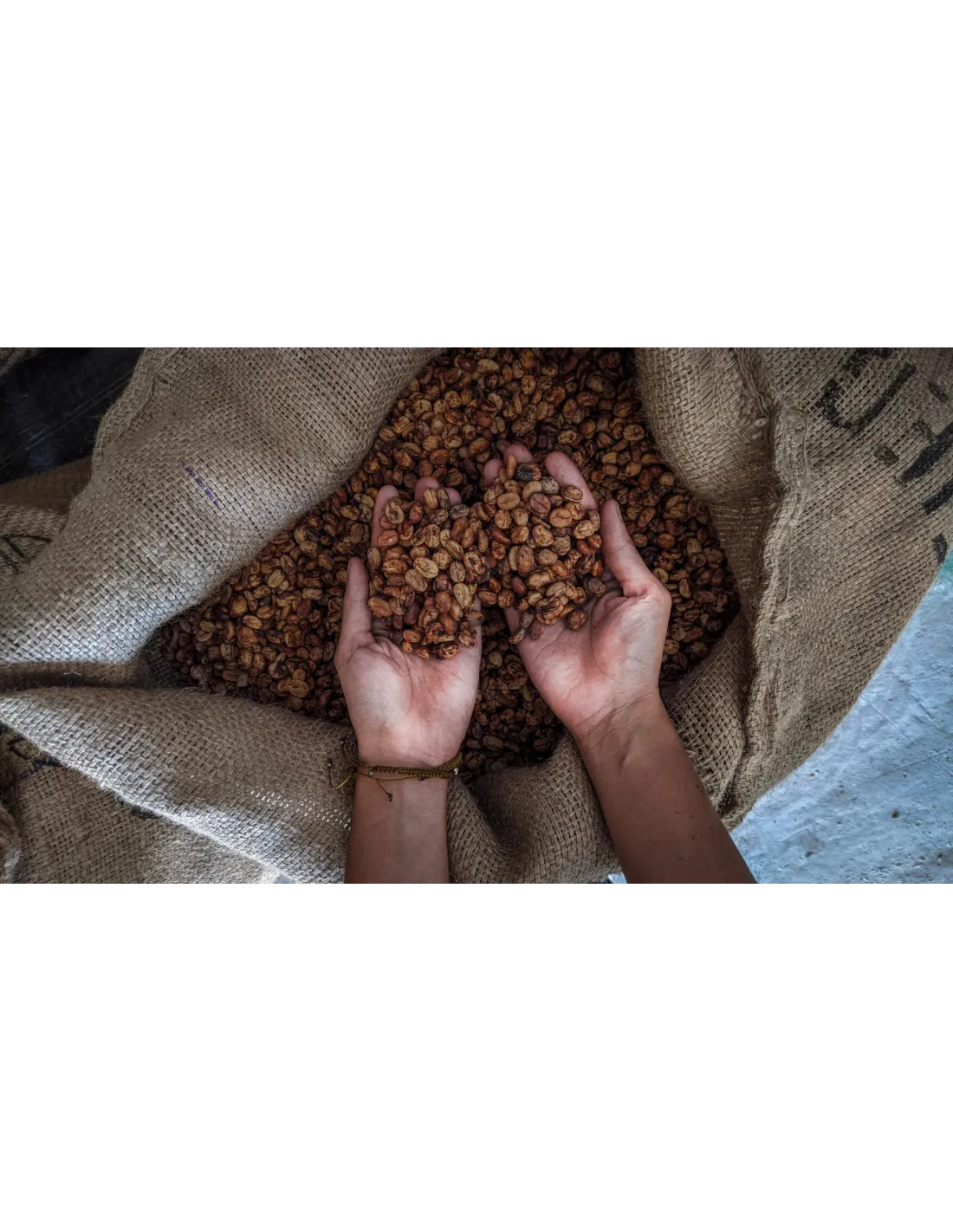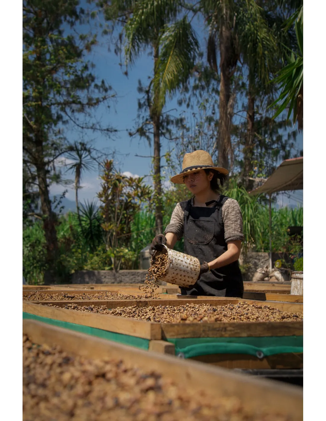 Táto šarža spracovaná metódou červeného medu pozostáva z kostarických a kolumbijských odrôd. Čerešne sa selektívne zbierajú, zbavujú sa bobúľ a potom sa rozprestierajú na vyvýšených afrických lôžkach, kde sa sušia na slnku. Proces Red Honey zanecháva na zrnách vrstvu slizu, ktorá na slnku karamelizuje a dodáva káve hĺbku chuti a sladkosť. Čas sušenia sa starostlivo kontroluje a závisí od arómy a tvrdosti, ktorú zrná získajú počas procesu sušenia.