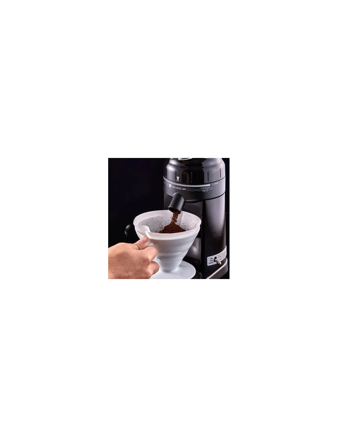 Elektrický mlynček Hario V60 EVCG-8B špeciálne navrhnutý na mletie kávy priamo v legendárnom kávovare V60. Vlajková loď spoločnosti Hario.