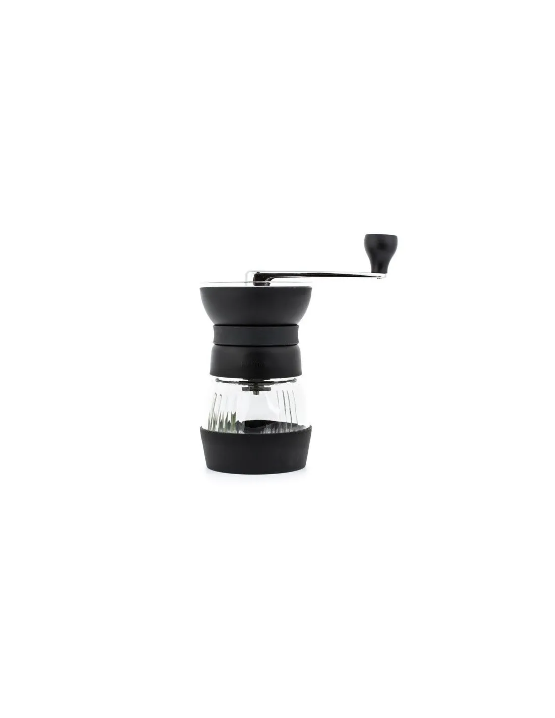 Vďaka ergonomickému tvaru sa mlynček veľmi dobre drží v ruke a mletie je veľmi pohodlné. Spodná časť mlynčeka je vybavená protišmykovou podložkou z odolnej gumy, ktorá zabezpečí, že mlynček nebude pri mletí skákať ani na klzkom povrchu. Priehľadná sklenená nádoba na mletú kávu je vybavená vekom, takže ju môžete použiť na uskladnenie kávy na neskoršie použitie. Zmestí sa do nej až 100 g kávy. Pri brúske Skerton PRO vás poteší aj silikónová obruč v mieste uchopenia brúsky, vďaka ktorej je brúsenie pohodlnejšie.