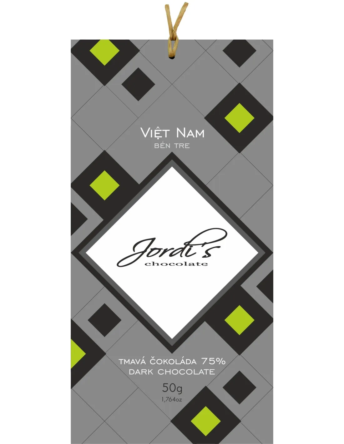 Horká čokoláda 75 % z kakaových bôbov z Vietnamu, kde sa kakao vo veľkom pestuje len niekoľko desaťročí. Kakaovníky rastú v oblasti Ben Tre v tieni kokosových paliem a rôznych ovocných stromov.