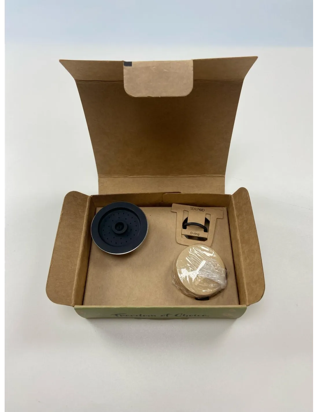 Každé balenie obsahuje: 1x kapsula Sealpod z nerezovej ocele, 100x papierový filter