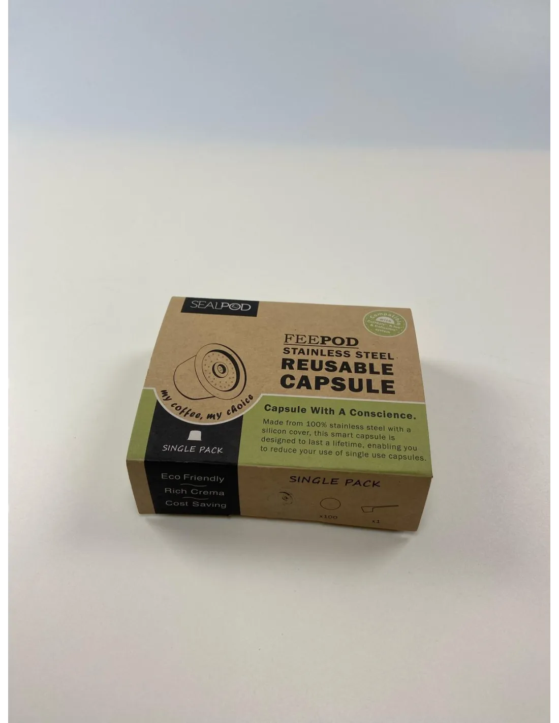 V porovnaní s plastovými plniacimi kapsulami má kapsula Sealpod z nehrdzavejúcej ocele neobmedzenú trvanlivosť. Kapsulu teda môžete plniť neobmedzene dlho, nijako sa nepokazí. Kapsula je uzavretá silikónovým uzáverom, ktorý vďaka upravenému otvoru na ihlu kávovaru tiež nie je obmedzený počtom použití. S plniteľnou kapsulou určite ušetríte peniaze.