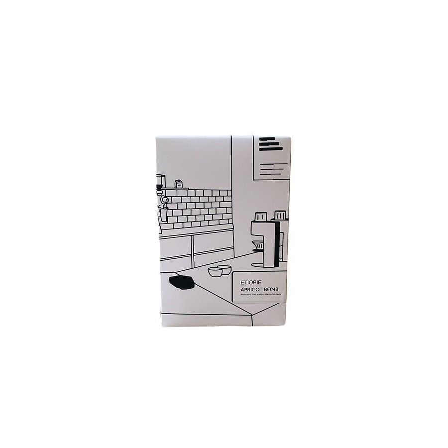 Jedna káva: Na tejto limitovanej edícii nájdete časť kaviarne, ktorú pre nás zachytila Dominika Mašínová. A čo je vo vnútri? Kristián si na túto príležitosť vybral super prírodnú Etiópiu, ktorú sme fermentovali s marhuľami! Môžete sa tešiť na opojnú jazdu marhuľového likéru, manga a mliečnej čokolády.