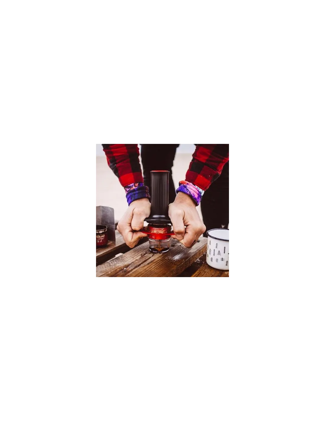 Do košíka na kávu nasypte 10-15 gramov jemne namletej kávy a utlačte odmerkou. Vložte pohár do záhybov košíkov. Priesvitnú komoru s vloženým filtrom a tesnením na dne naskrutkujte na kôš. Do komory nalejte 30 - 60 ml vody (nesmie byť vyššia), najlepšie s teplotou 94 stupňov. Mierne zatlačte čierny piest (tak, aby boli výstupky na pieste a koši v rovnakej polohe). Počkajte asi jednu sekundu. Potom rukami stláčajte rukoväte k sebe, kým sa vám nevytvorí lahodný nápoj.