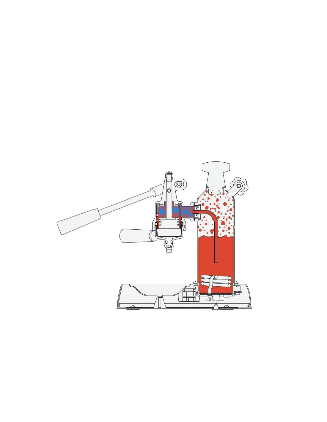 Celá príprava kávy sa vykonáva ručne, najprv sa zdvihnutím páky naplní hlava vodou a potom sa stlačením páky pretlačí voda cez kávu. Tlak je vytváraný len vašou silou a nie je tu žiadne čerpadlo ani pružina. Po naplnení bojlera možno naraz uvariť až 8 šálok kávy. Ak však často pripravujete väčšie množstvo kávy, je dobré zvážiť model s väčším bojlerom.