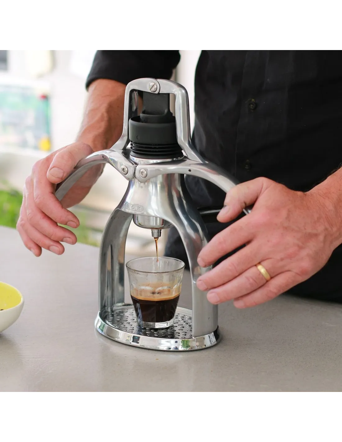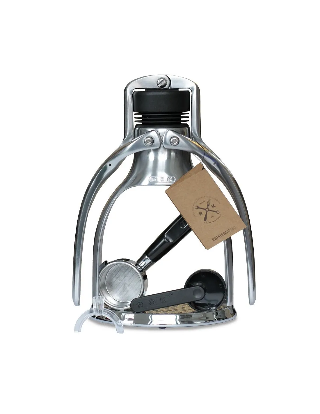 Ručný pákový kávovar ROK EspressoGC dokáže pripraviť kávu bez použitia elektrickej energie , len silou vlastných rúk. Jednoduchý, odolný a štýlový kávovar s jedinečným vzhľadom pre absolútnu kontrolu pri príprave kávy.