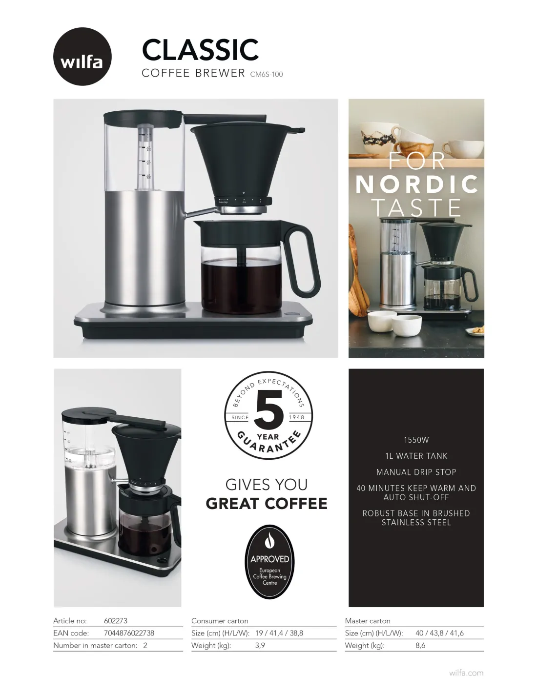 Kávovar Wilfa Classic (CM6S-100), strieborný