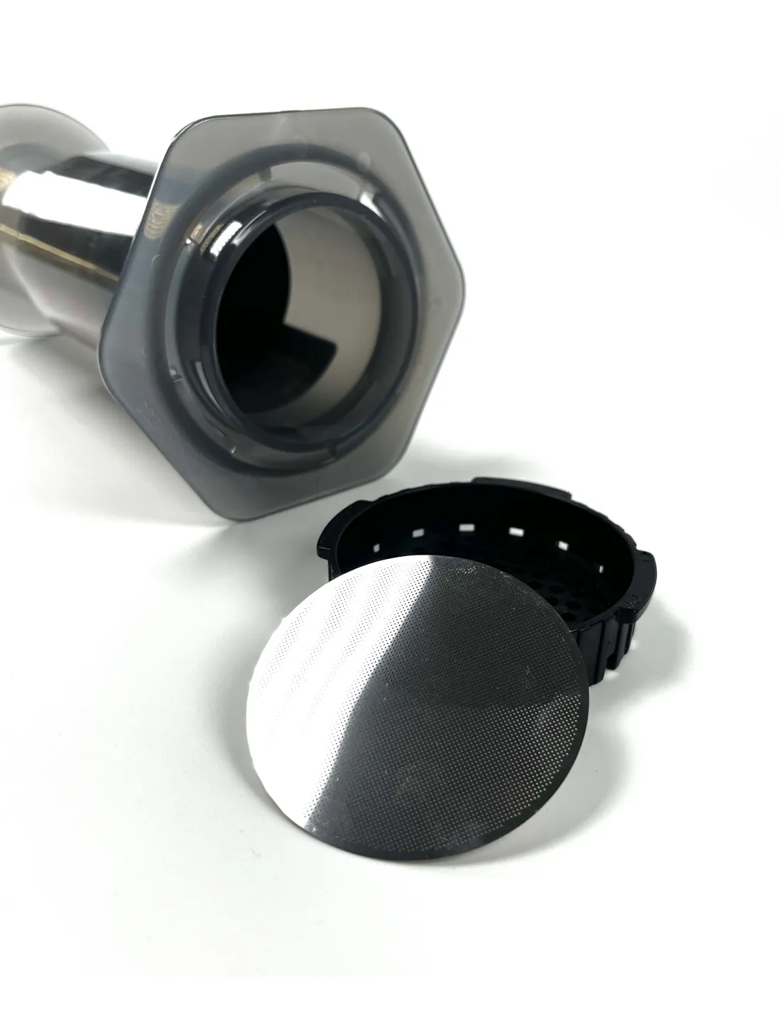 Kafiový filter z nehrdzavejúcej ocele pre Aeropress ako alternatíva papierových filtrov alebo značkových filtrov z nehrdzavejúcej ocele od spoločnosti Able. Ekonomickejšia možnosť, ktorá zároveň dodáva káve bohatšiu chuť.