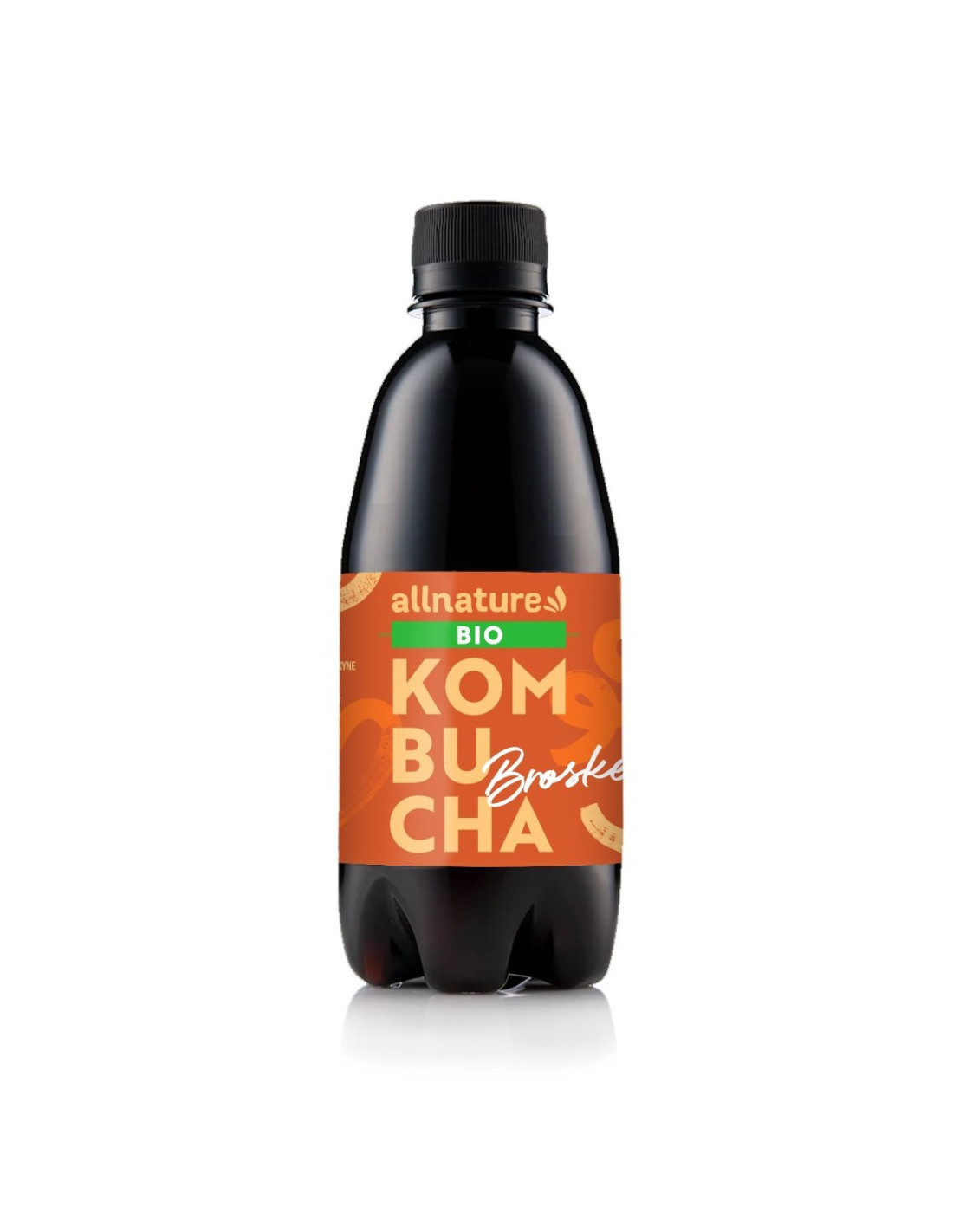 Organická kombucha s broskyňovou príchuťou je fermentovaný nápoj, ktorý spája tradičnú výrobu kombuchy zo zeleného čaju a prirodzenú ovocnú sviežosť broskýň. Nápoj je vytvorený pomocou kombuchovej kultúry a je mierne perlivý, s vyváženou chuťou vďaka 2 % broskyňového sirupu.