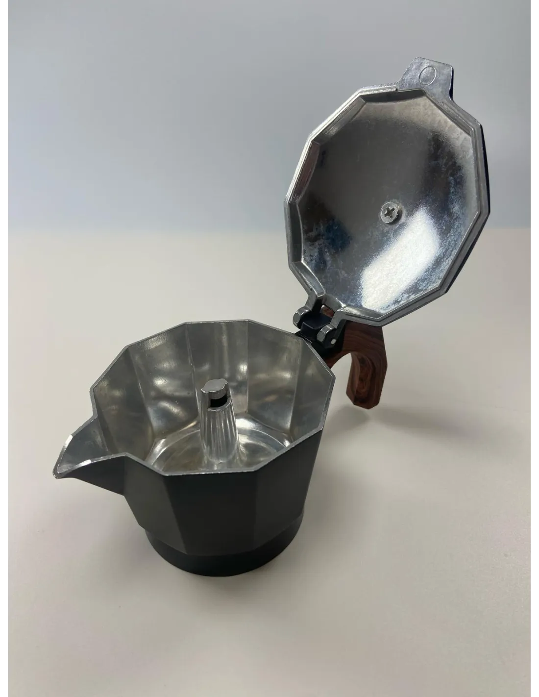 Hliníková moka kanvica Kaffia na prípravu 3 šálok moka kávy. Jednoduchý spôsob prípravy blízky espressu za zlomok ceny. Objem: cca 150 ml. Nevhodné na indukciu. POUŽITÉ/ZĽAVNENÉ