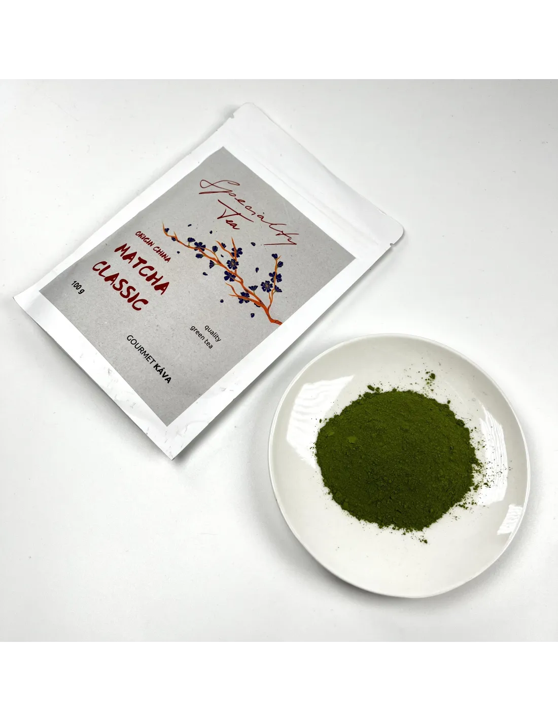 Špeciálny čaj - Matcha Classic je vysokokvalitný práškový zelený čaj ideálny na každodenné pitie. Na výrobu prášku sa používajú listy zo spodných častí čajovníka alebo zmes listov rôzneho veku. Zber môže byť čiastočne mechanizovaný. Chuť je o niečo silnejšia a mierne horká, menej jemná, čo je vhodné na varenie alebo do miešaných nápojov.