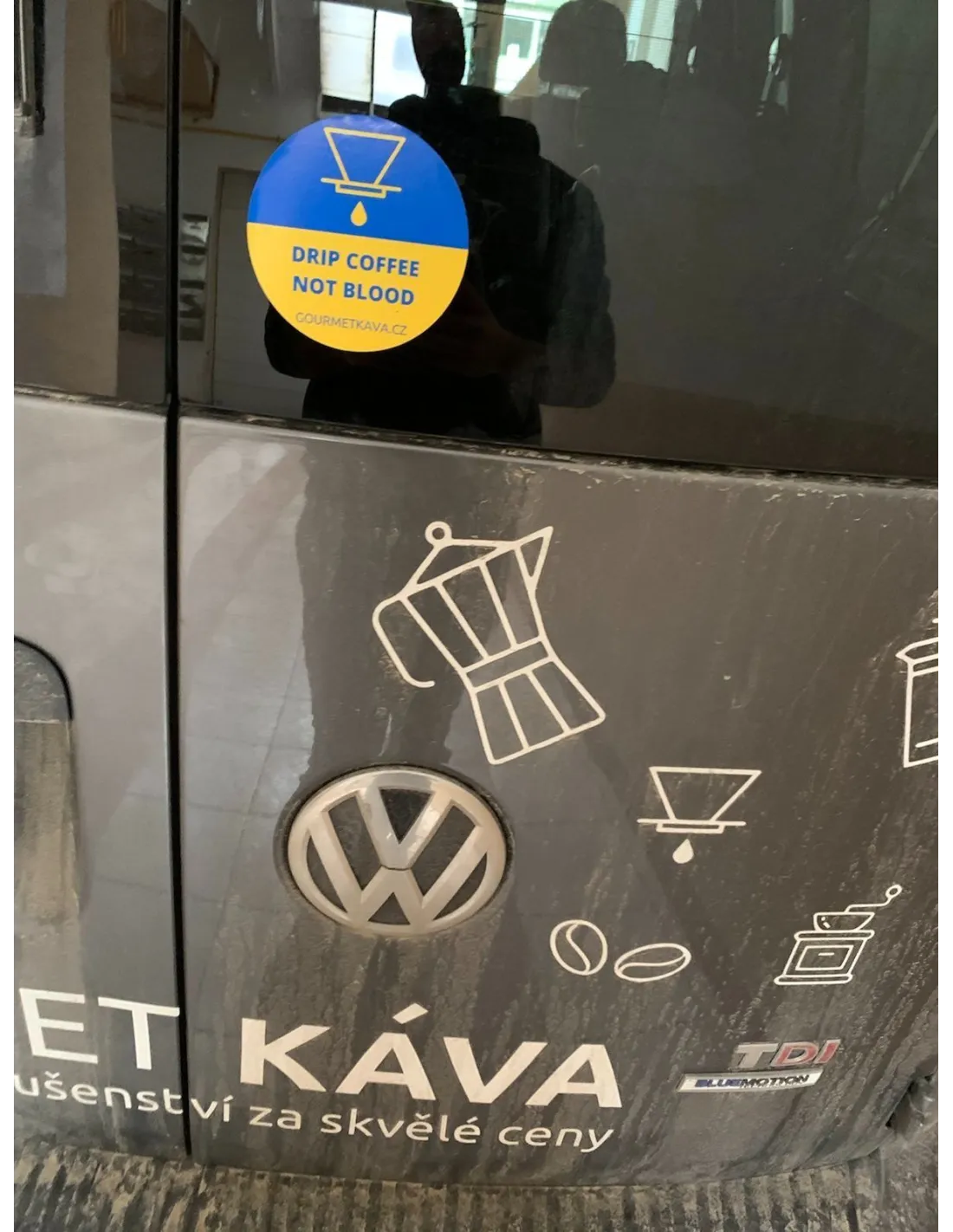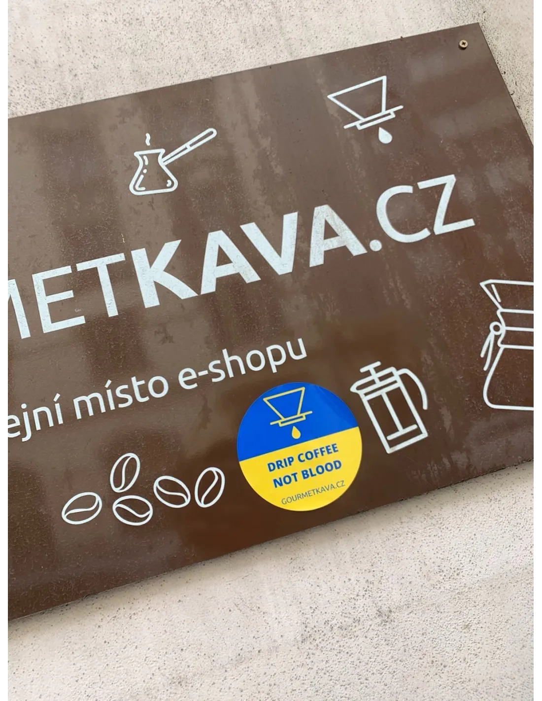 Kúpou nálepky DRIP COFFEE NOT BLOOD prispejete na jednu z najväčších humanitárnych zbierok pre Ukrajinu, ktorú organizuje spoločnosť Člověk v tísni.