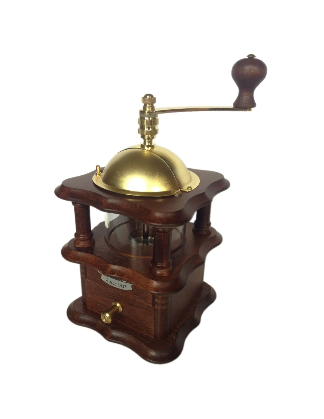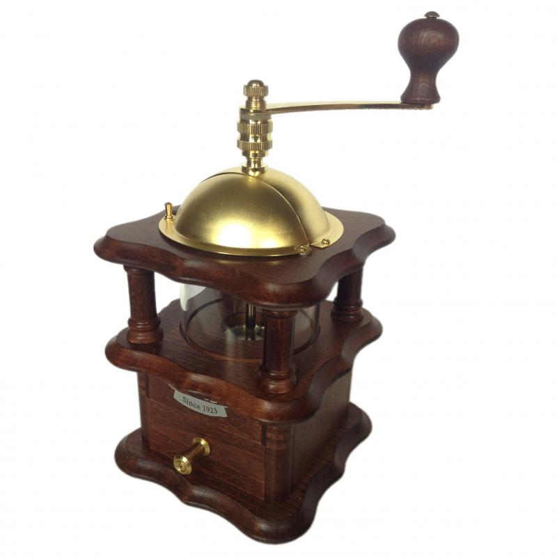 Mlynček na kávu Lodos Nostalgie z tmavého bukového dreva, so zaujímavým okienkom na kávu a 10-ročnou zárukou od tradičnej českej spoločnosti Lodos.