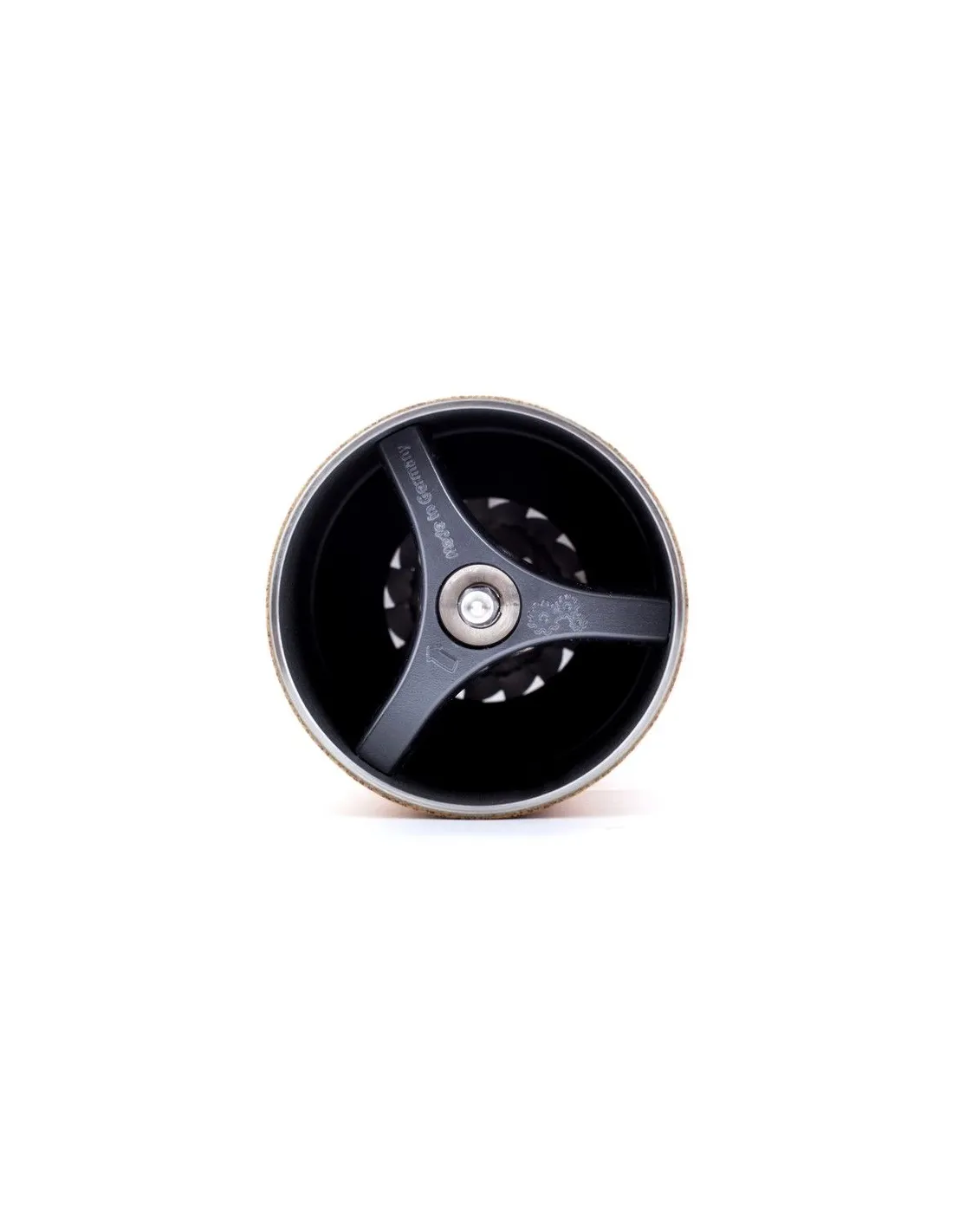 Nastavenie brúsenia sa ovláda pohodlným otočným gombíkom umiestneným pod brúsnymi kameňmi. Blokovací systém uzamkne uprednostňované nastavenie mletia na mieste, čo vám pomôže opakovať uprednostňované nastavenie znova a znova. Výsledky sú mimoriadne uspokojivé, a to tak pri mletí na alternatívne spôsoby, ako aj pri mletí na espresso, vďaka čomu je zariadenie v porovnaní s inými ručnými mlynčekmi jedinečné. Okrem toho sú mlecie kamene vďaka svojim fyzikálnym a chemickým vlastnostiam neutrálne z hľadiska ich vplyvu na chuť kávy.