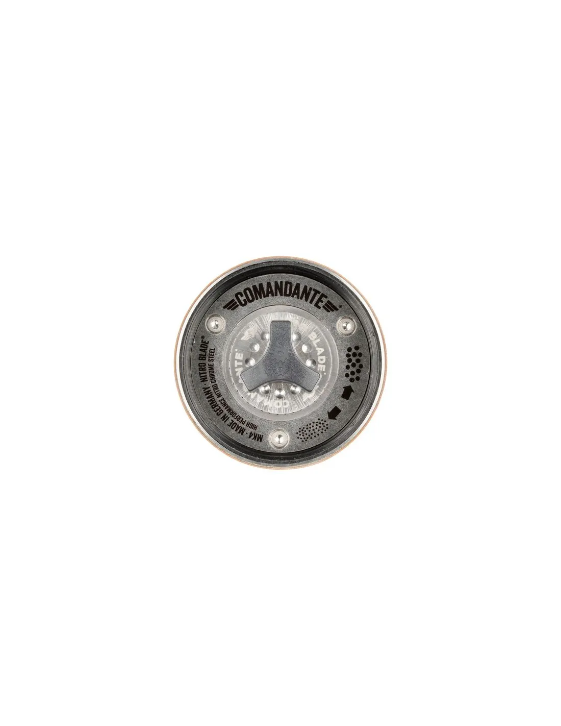 Mlynček má tiež jedinečný dizajn. Na výrobu brúsky boli použité vysokokvalitné materiály, takže nielen brúsne kamene, ale aj telo, os, kľuka a mikroguličkové ložiská sú z nehrdzavejúcej ocele. Výrobky Comandante neobsahujú hliník. Tam, kde je možné použiť polyméry na zlepšenie výkonu, používa spoločnosť Comandante vysokoúčinné polyméry bez obsahu BPA, ktoré spĺňajú najprísnejšie normy bezpečnosti potravín. Tieto materiály sú navrhnuté tak, aby vydržali roky náročného používania. Comandante miluje prírodné drevo. Rukoväť z dubového dreva je úžasne ergonomická a krásna na pohľad.