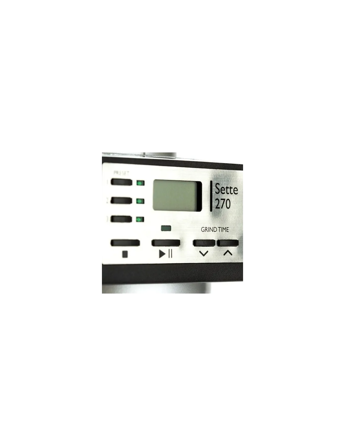 Hlavnou výhodou mlynčeka Sette 270W oproti verzii 270 je integrovaná digitálna váha od spoločnosti Acaia. Tri programovateľné tlačidlá tu umožňujú nastaviť rôzne hmotnosti s presnosťou 0,1 g. Vďaka tomuto pohodliu sa vám už nestane, že by vám zostalo trochu kávy alebo že by ste museli mlieť viac.