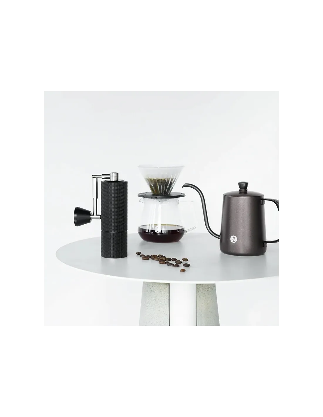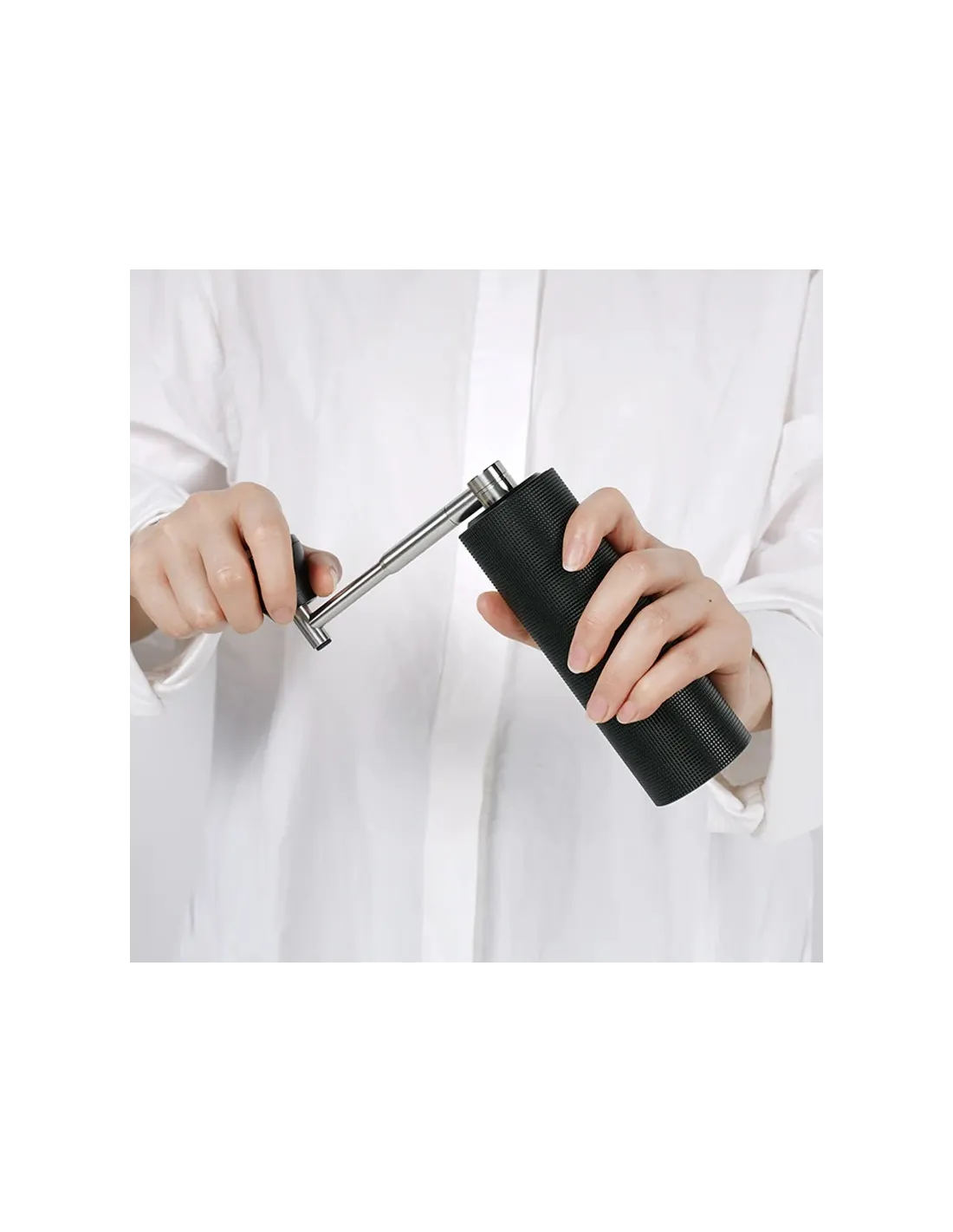 Textúrovaný povrch zaručuje, že vám mlynček nevypadne z ruky a mletie bude pohodlné. S priemerom len približne 5 cm, výškou s rukoväťou približne 16 cm a nízkou hmotnosťou splní mlynček Timemore očakávania všetkých cestovateľov. Šesťhranné zakončenie rukoväte zaručuje pohodlné mletie a jednoduché použitie sklopnej rukoväte.
