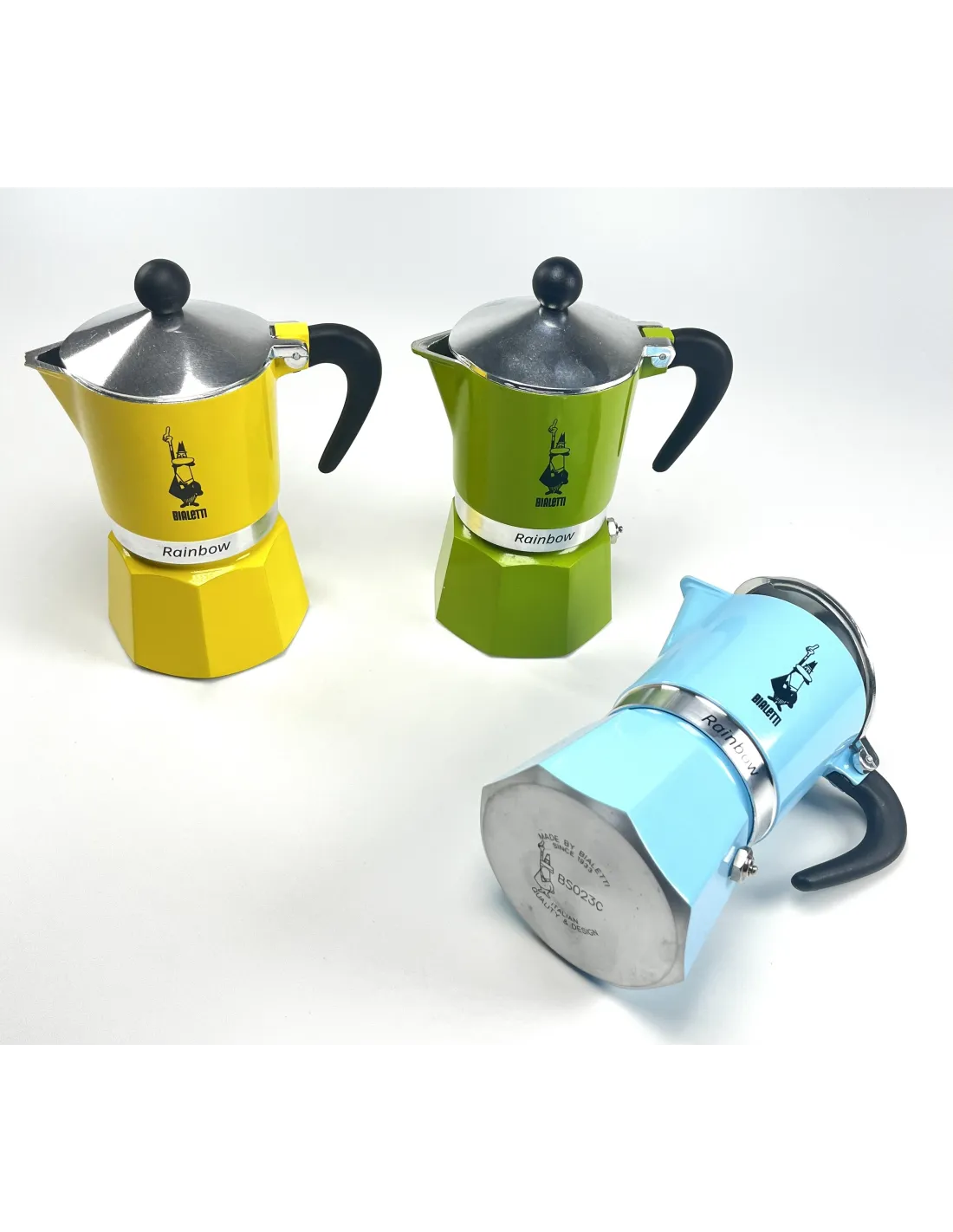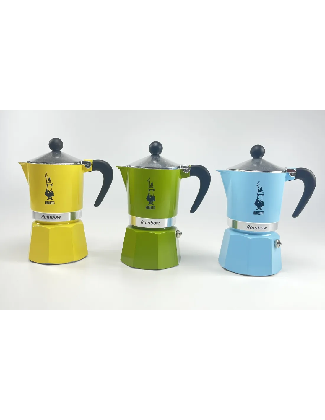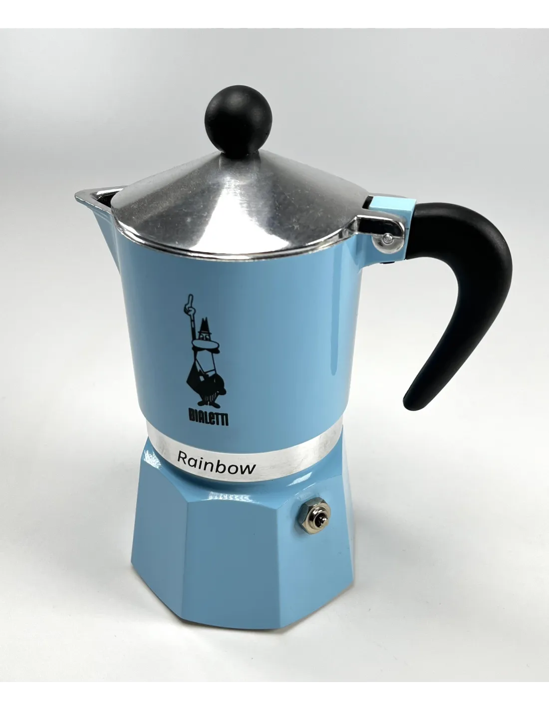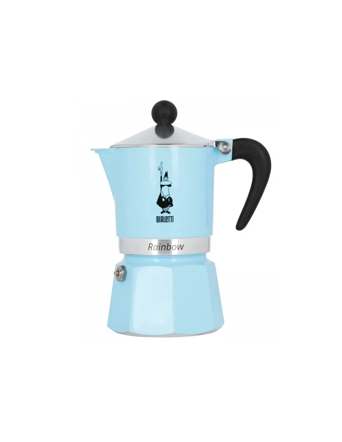 Štýlová hliníková moka kanvica Bialetti Rainbow od talianskej spoločnosti Bialetti na tradičnú prípravu silnejšej kávy. Vhodný na 3 šálky. Objem: približne 130 ml.