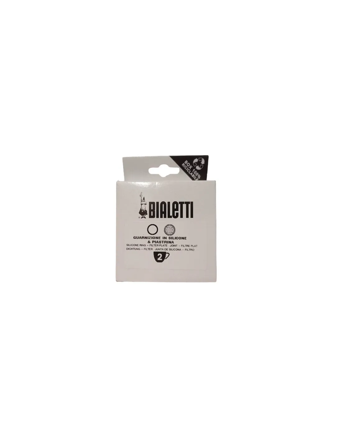Balenie obsahuje 1x náhradné gumové tesnenie pre hliníkovú kanvicu BialettiMukka Expresscappuccino moka vo veľkosti 2 šálok a 1x náhradné hliníkové sitko.