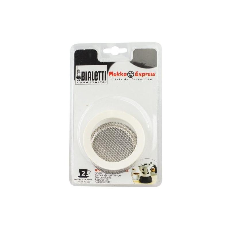 Náhradné gumové tesnenie s náhradným sitkom pre hliníkové moka hrnce Bialetti Mukka Express s 2 šálkami.