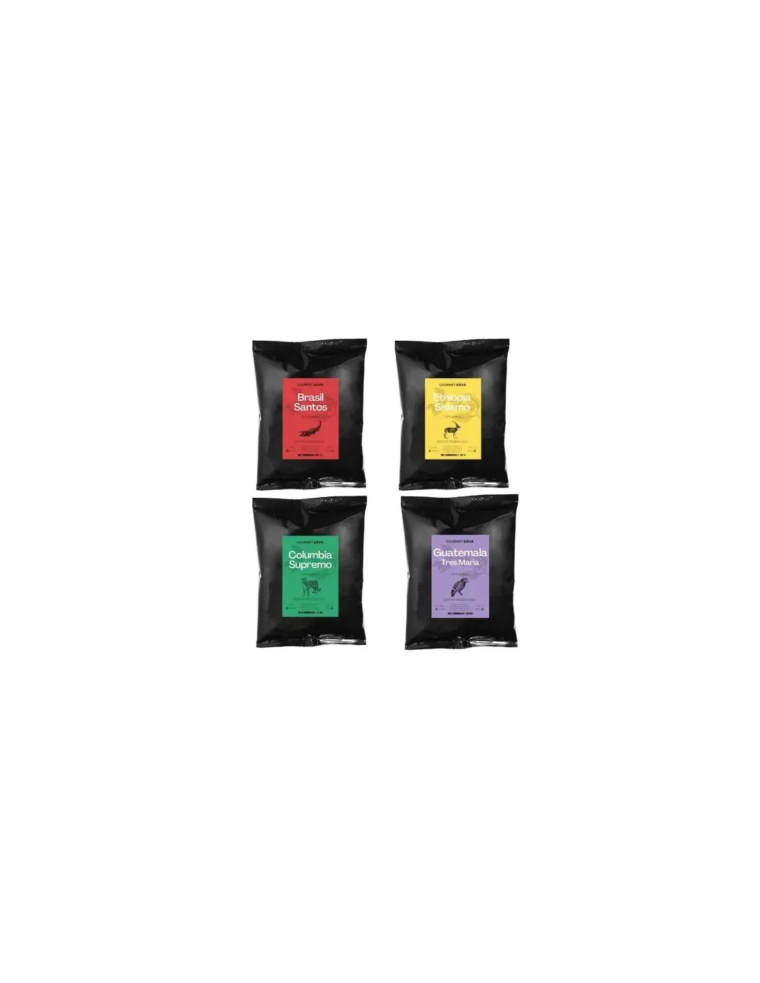 Tieto 4 kávy sú ideálnym prierezom našich káv, počnúc tými najlepšími Brazília Santosaž po dokonale vyváženú Guatemala Trés Maria a Kolumbia Supremo, na príjemne ovocnú kávu Etiópia Sidamo.