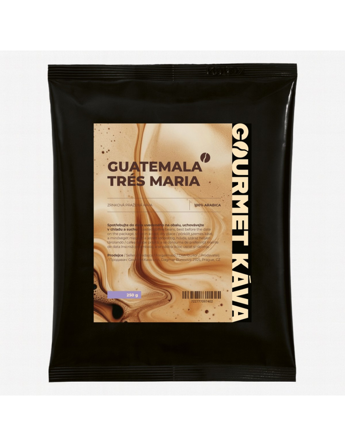 Guatemalská káva Trés Maria vyniká svojou dokonalou vyváženosťou a príjemnou sladkosťou doplnenou chuťou zrelého tropického ovocia.
