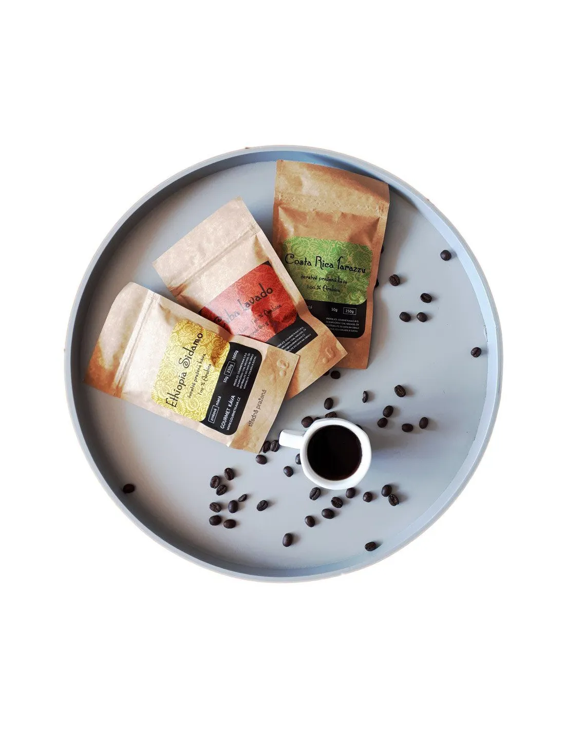 Chcete vyskúšať našu kávu, ale nechcete si kupovať 250g balenia jedného druhu? Vyskúšajte všetky naše kávy v malom 50g balení.
