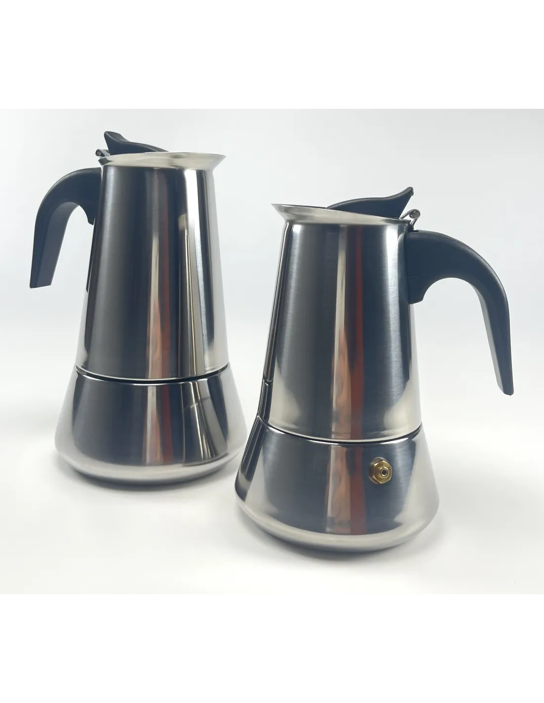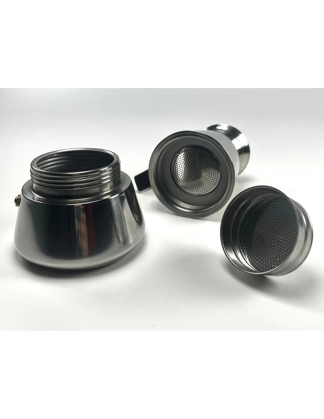 Moka kanvička z nehrdzavejúcej ocele Kaffia na 6 šálok moka kávy. Jednoduchý spôsob prípravy kávy veľmi blízky espressu, ale za zlomok ceny. Objem : približne 302,2 ml. Je vhodný aj na indukčné varné dosky!