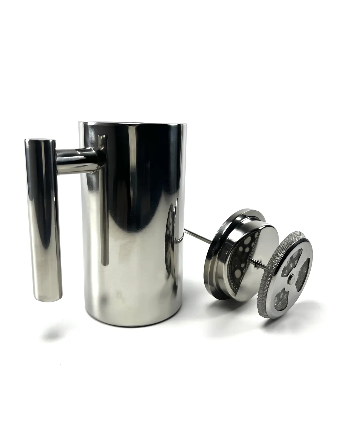 Elegantný celonerezový french press je ideálnym nástrojom na prípravu čerstvej kávy pre tých, ktorí majú radi jednoduchú prípravu kvalitnej kávy, moderné materiály a čistý dizajn.