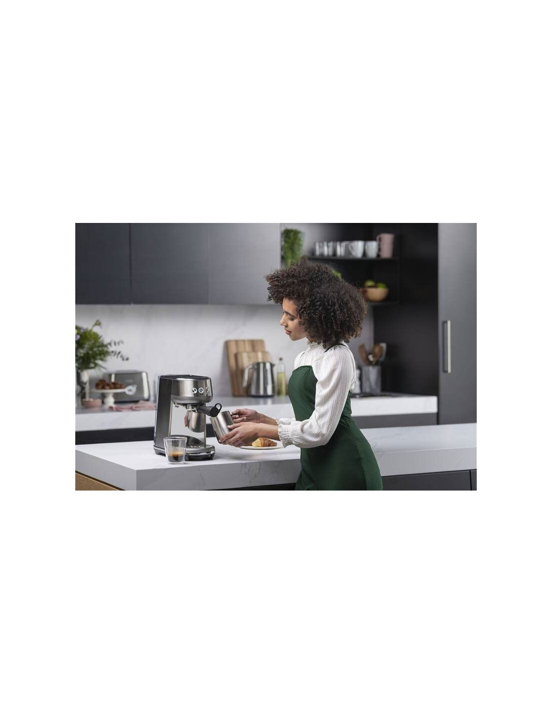 Rýchlo uvarte kvalitnú kávu s presnou kontrolou extrakcie, spoľahlivým ohrevom a bohatou mliečnou penou - to všetko v kompaktnom, priestorovo úspornom dizajne na pracovnom stole.